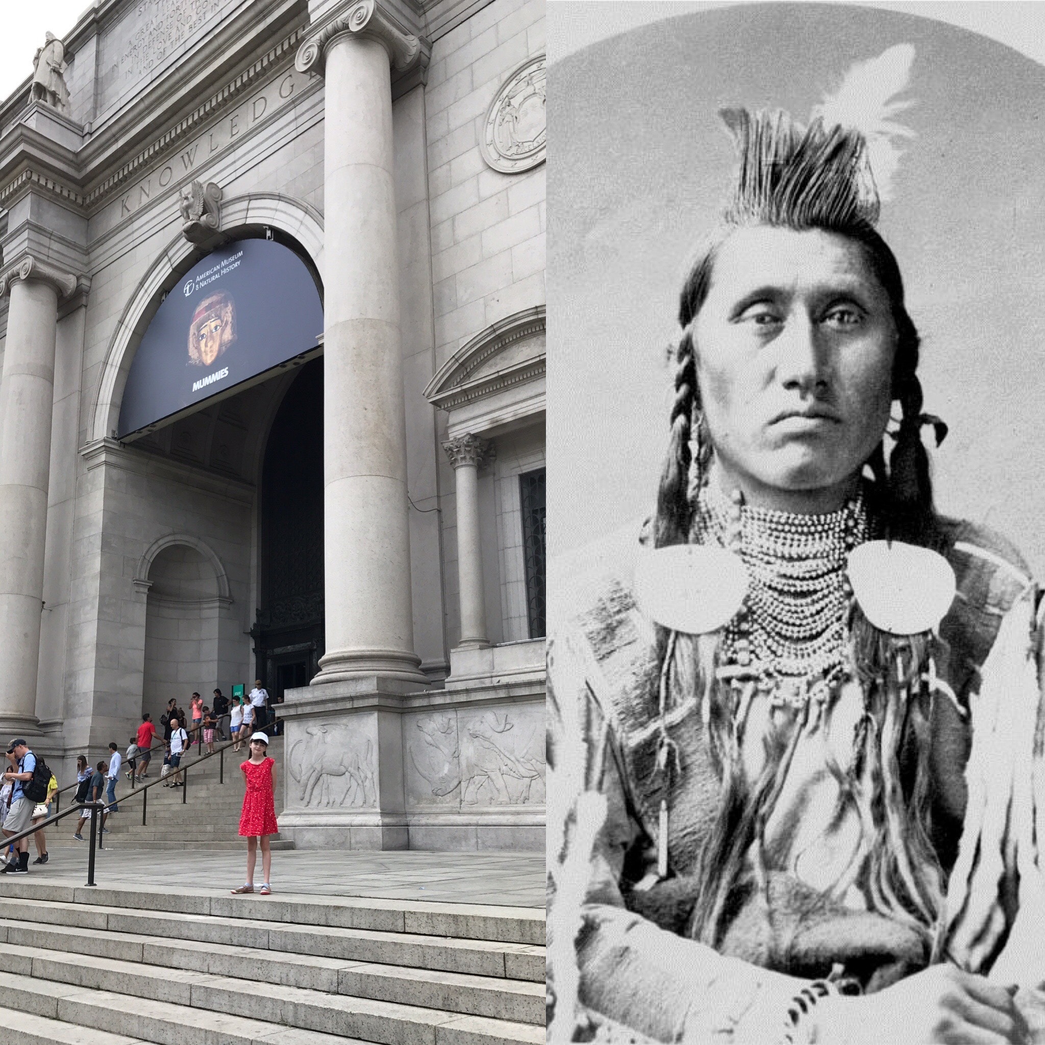 After traveling to New York City for my solo exhibition Wendy Red Star: Um-basax-bilua “Where They Make The Noise,” curated by Michelle Grabner at CUE Art Foundation, Beatrice and I made a stop at the American Museum of Natural History, an institution that once held the ancestral bones of Apsáalooke Chief, Pretty Eagle. Following the death of Pretty Eagle in 1903, his body was placed in a wagon box instead of the usual scaffold. His remains, along with those of 60 other tribal members, were removed from the burial sites along the Bighorn River in the early part of the 1900s by Bighorn County Sanitarian Dr. W. A Russell. The remains were sold to museums throughout the country—some for less than $500.