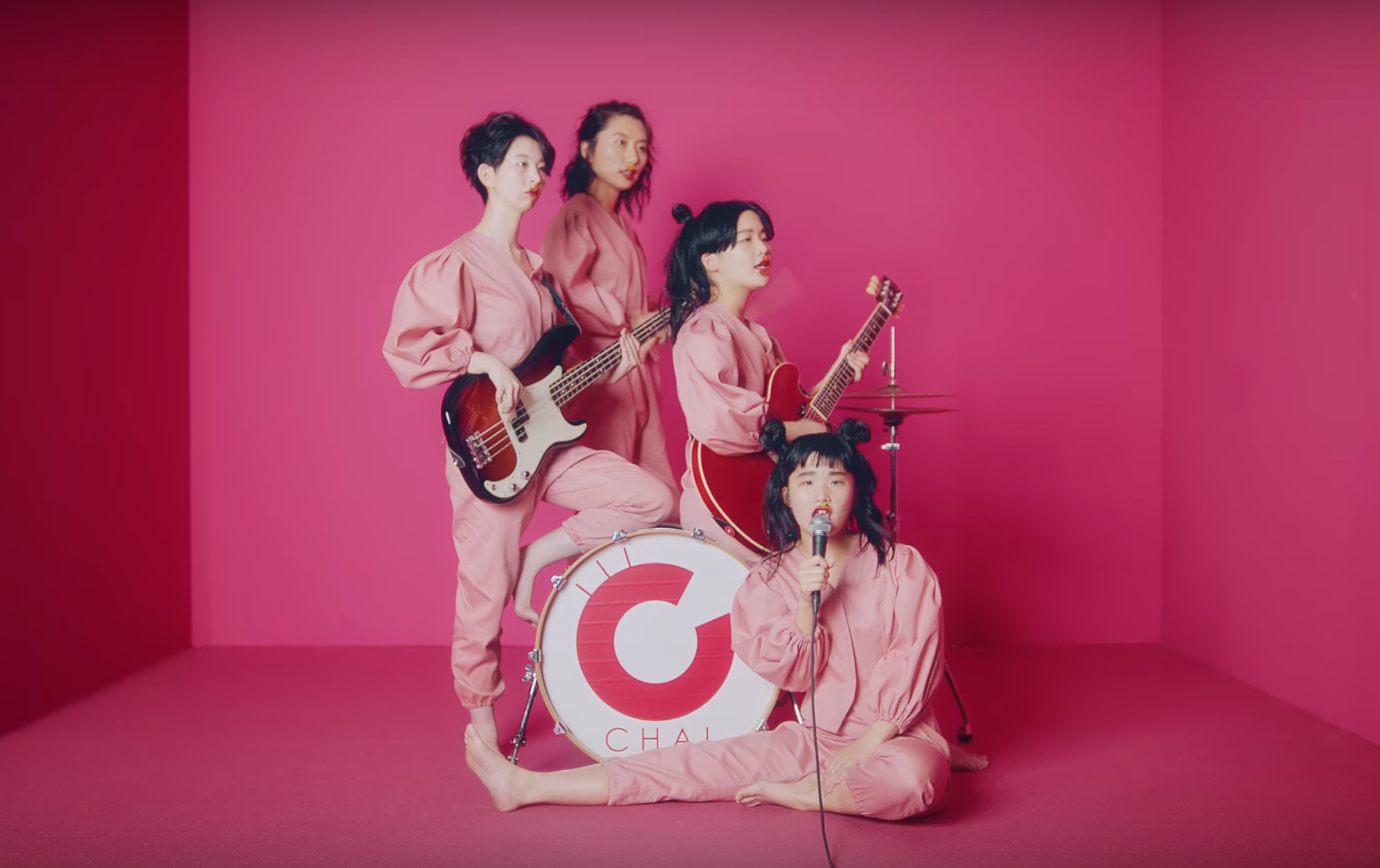 CHAI is a Japanese band. I think they started playing near Nagoya. Their music is mad propulsive, joyful, and raucous. My first experience of them was through their video for “N.E.O.,” a song about subverting kawaii tropes. I think my favorite part of the clip’s visual grammar is when they do these kind of tableaux compositions, abstracting their band roles and the performativity of a video. But the song itself is awesome and spiky.