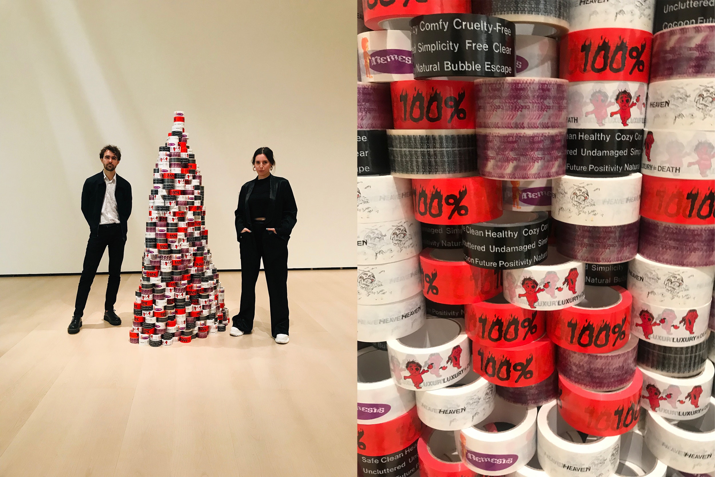 Nemesis made a rare public appearance as part of Architecture Effects, a hyperstitionally charged exhibition exploring the fallout of the Bilbao Effect (open ’til April 29). Our piece HEAVEN (LUXURY = DEATH) explored the concept of heaven as 100% design. It takes the form of a 10-minute audio piece (featuring Colin Self) and a sculptural installation of 1,200 roles of custom-printed Nemesis adhesive tape. The audio piece is available on the exhibition’s app.