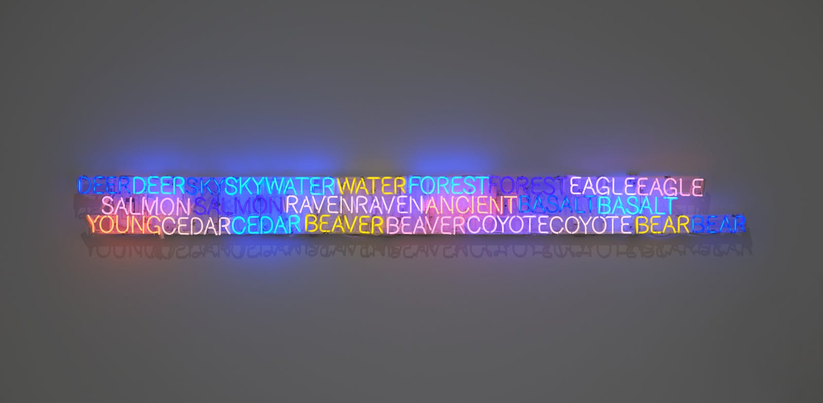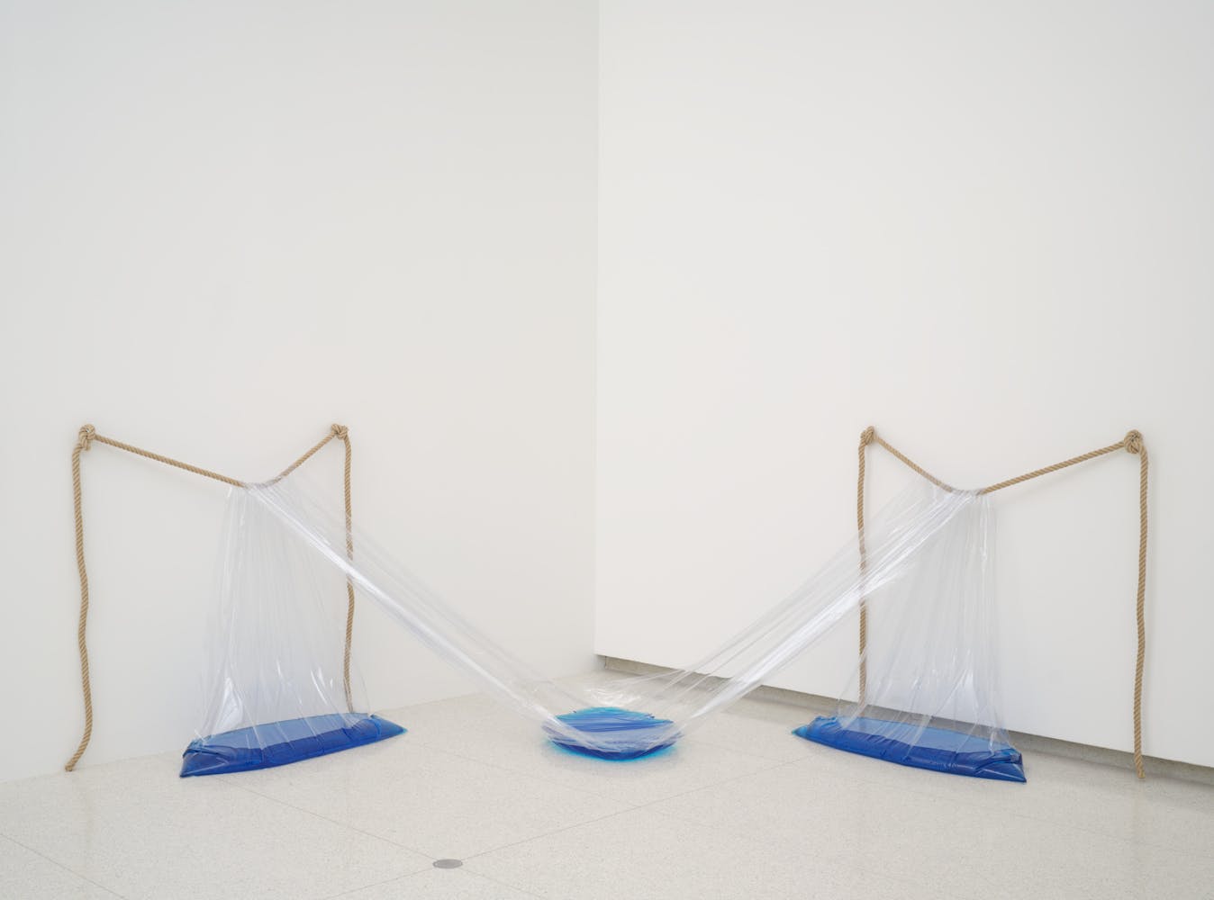 There is also Marie Watt’s neon piece from 2023, Shared Horizon (Keepers of the Western Door), and Senga Nengudi’s installation work Water Composition II, comprised of PVC, rope, and colored water.