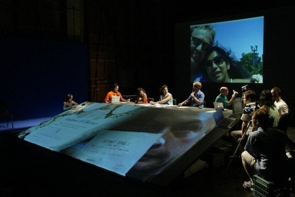 In terms of the set design, The Builders Association always seems to put people normally relegated to the sound booth or the back of the theater right on stage. Can you talk about that choice a bit?