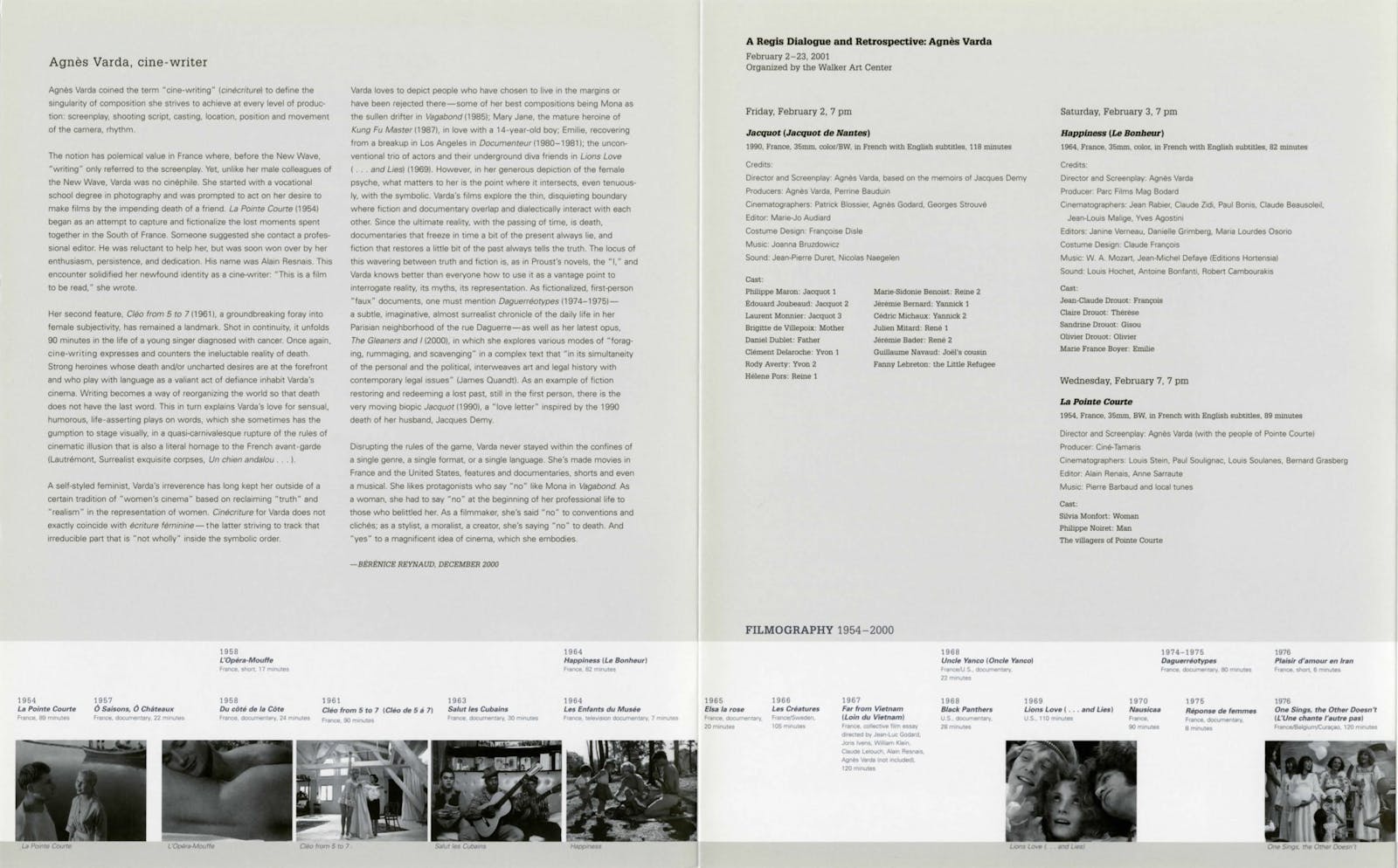 Agnès Varda coined the term “cine-writing” (cinécriture) to define the singularity of composition she strives to achieve at every level of production: screenplay, shooting script, casting, location, position and movement of the camera, rhythm.
