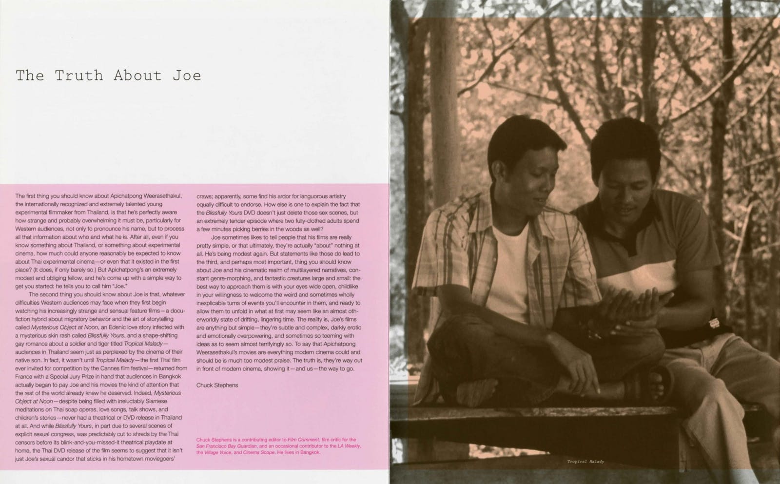Chuck Stephens is a contributing editor to Film Comment, film critic for the San Francisco Bay Guardian, and an occasional contributor to the LA Weekly, the Village Voice, and Cinema Scope. He lives in Bangkok.
