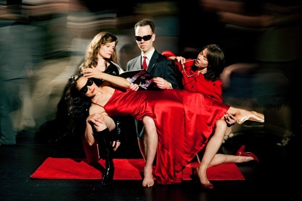 This year they set themselves the challenge of finding one streamlined concept that would still show the divergent visions of Sally Rousse, Megan Mayer, Vanessa Voskuil, and Sachiko Nishiuchi (all of whose work was still very much in-progress at the time of the shoot). It involved calling on a sizable group of Walker performing arts fans/volunteers to come to the McGuire Theater for a four-hour shoot one evening; more than a dozen obliged, bringing along their own wardrobe items to boot. The assembled group walked through the each shot, creating a blur of human action as a backdrop to the dancers, who struck stock-still poses.