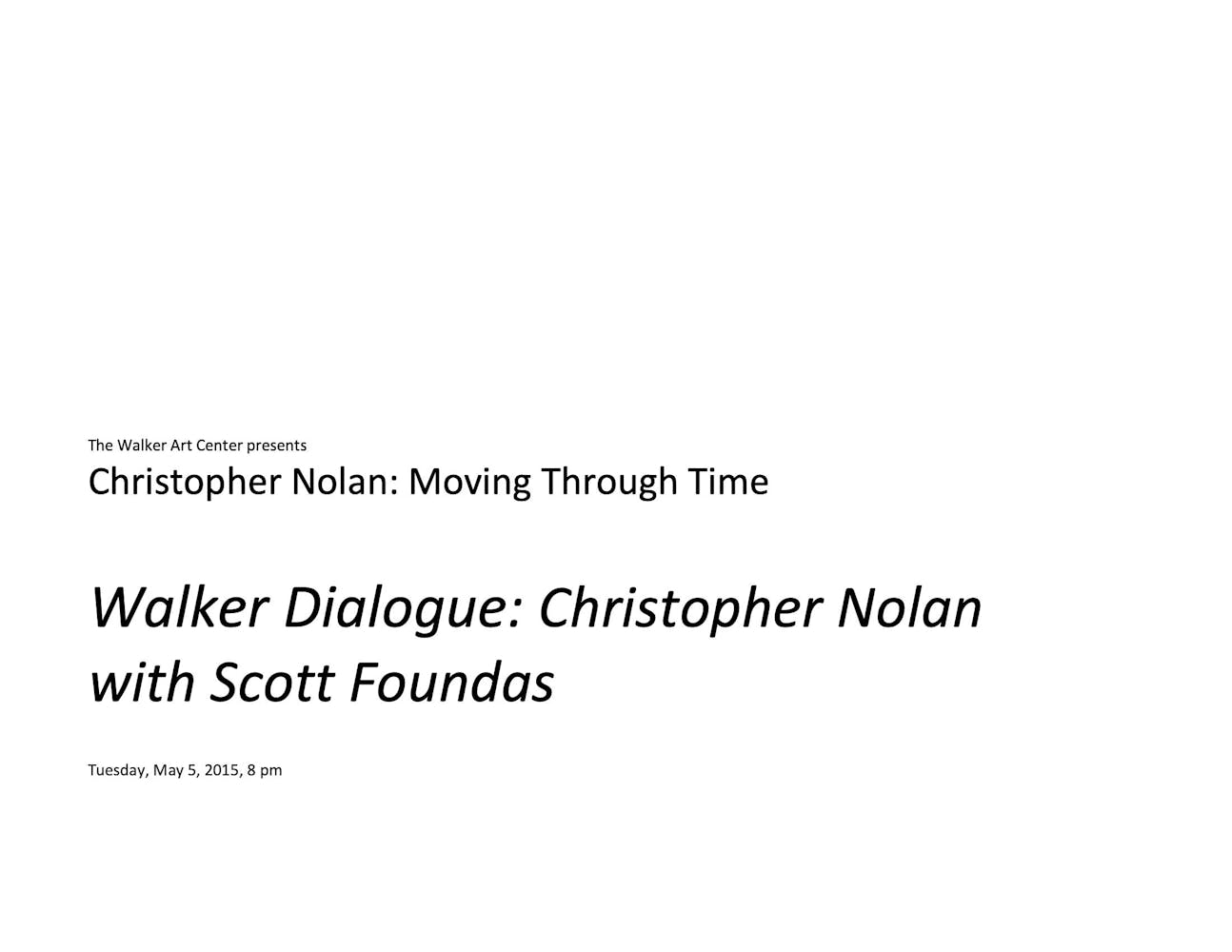In celebration of 25 years of Dialogues programs, the Walker honors Nolan with a full retrospective of his work and welcomes the director to the Walker Cinema on May 5 for an illuminating conversation with Variety chief film critic Scott Foundas.