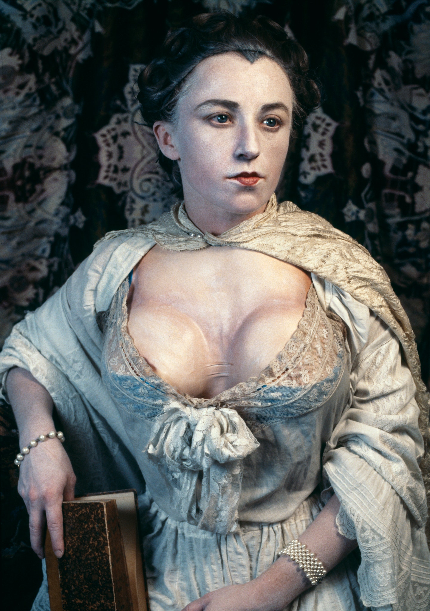 Sherman: It’s about whatever freedom I feel privacy gives me….Briefly in the ’80s I tried using friends and family and even hired an assistant to pose, and I felt like I just had to entertain them, be conscious of “Do you need coffee now? Are you tired? Do you want a break?” And they’d be kind of giggly because they were being made up to look funny. I push myself but I don’t push other people, or if I do, I’m apologizing because we’re going too late or whatever. Even having an assistant around, I’d feel self-conscious at times, like I’d better look busy now, rather than just spacing out, looking at images online or in magazines, or whatever I might do.