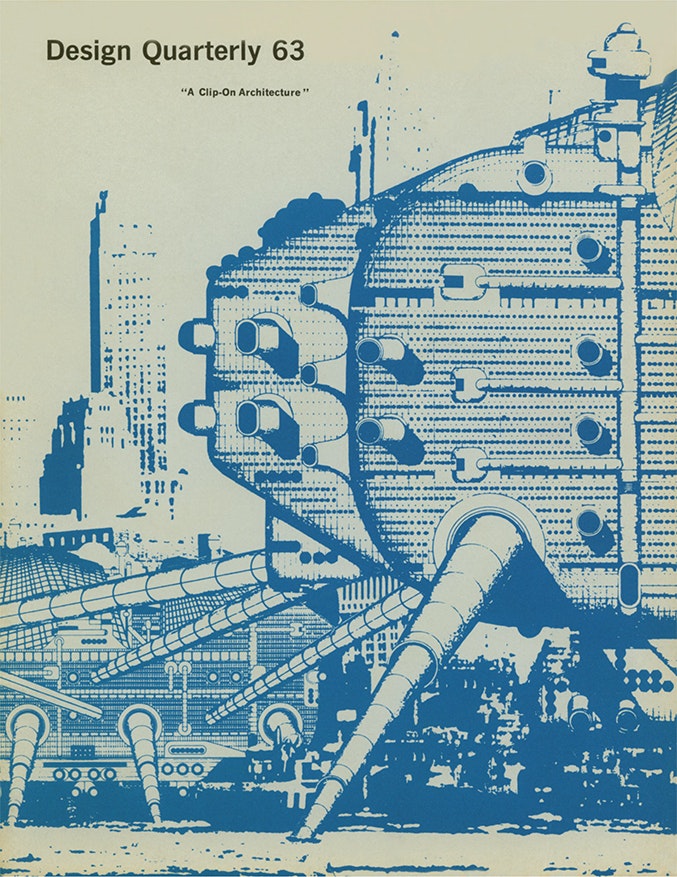 Guest editor Reyner Banham provides an illustrated account of the idea of a “clip-on” or “endless” architecture of systematic repetition of additive modules—particularly how it evolved in England through architectural collectives such as Archigram and in the work of Cedric Price. Locating its roots in the United States during the postwar period in, for instance, the endlessly repeatable facade of Eero Saarinen’s General Motors Technical Center, Banham argues the concept never really caught on in America but instead found itself useful in the more hesitant, indeterminate planning efforts in England. Predicated on notions of interchangeability, adaptability, and flexibility, “clip-on” architecture suggested a more improvisational, even ad hoc approach to compositional massing, introducing a modular and industrial approach to the production of architecture, moving from building construction to mass fabrication.