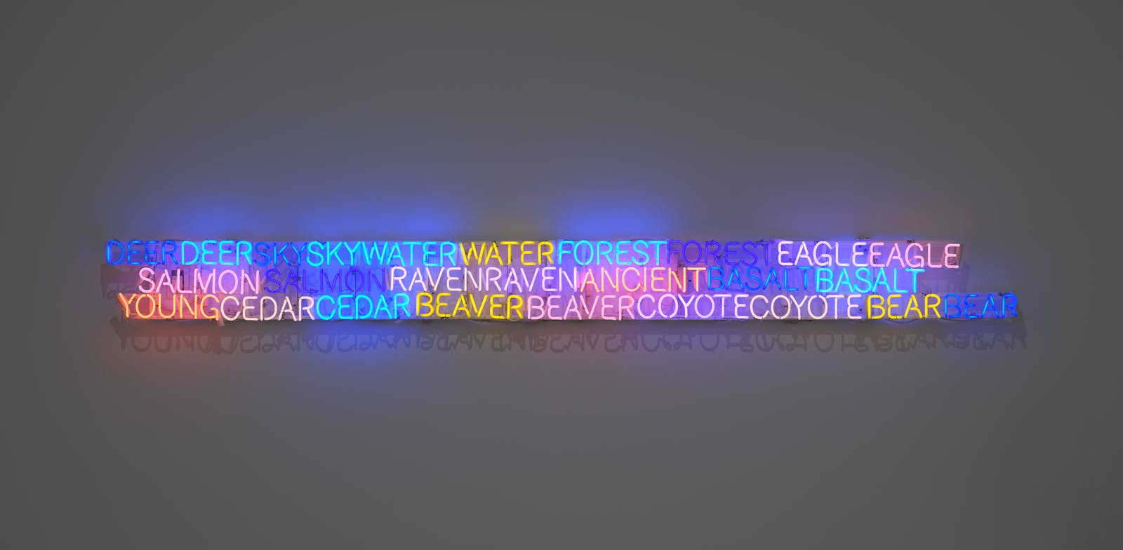 Through the work each of you do, you mobilize beadwork differently, and I think you’ve all become beadwork historians. I’m curious about the kinds of research you do in your practice, and how you bring those cultural inheritances into your work. Marie, I know you’ve talked about Seneca trade beads and have used a lot of historical beads in your practice. And more recently, you’ve been citing things like how neon can be seen as extending traditions of glass beadwork too.