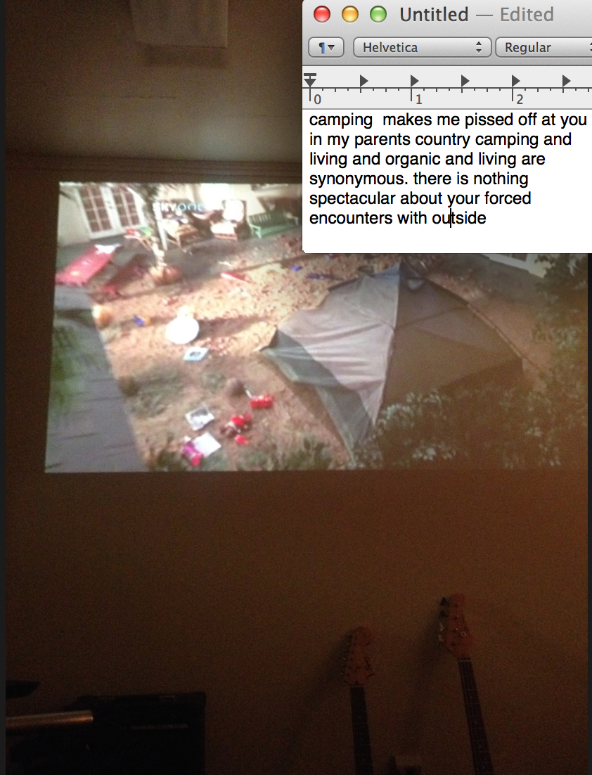 I think about the possibilities and restrictions in assemblage and abstractions that accelerate through networks; framing our mindscape, relations with people, objects and contributing to capital accumulation; the colonization of the mind. Techno-scientific marketing, hybrid combinations of language, images, semiotics, affects that effect gestures, speech, action. Creating both at the same time: extreme difference and sameness—but decentering ties to essentialisms. Difference—e.g. between my sister from Houston, TX, and me from London, UK; blood, the Internet, television, music; interpolating our differences, opportunities and desires. I make videos with my friends, family and Craigslist actors using assemblage scripts, images, affects, and things drawn from the apparatus of commercial production and representation. I try to frame how this apparatus interpellates us into “having” (today’s “being”); reusing and re-mixing its possibilities for de-essentializing and creating new subjectivities.