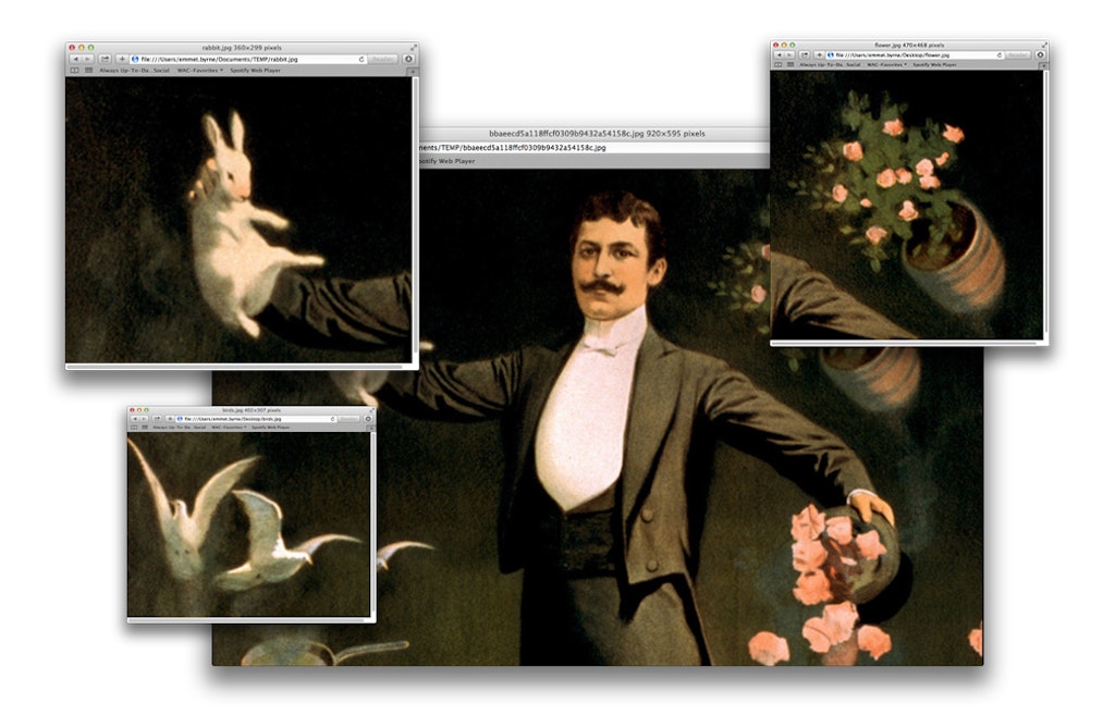 The Internet has changed the way we make and consume art. I work the way the online creative community does. Reuse, recycle, cannibalize, edit, play. I use Google-image search and stock photos, making subconscious choices on color form and content. My work mirrors my internal life, much in the way the user-created content of the Internet mirrors the internal life of our society. My work is me. Everything I am and everything I’m not.