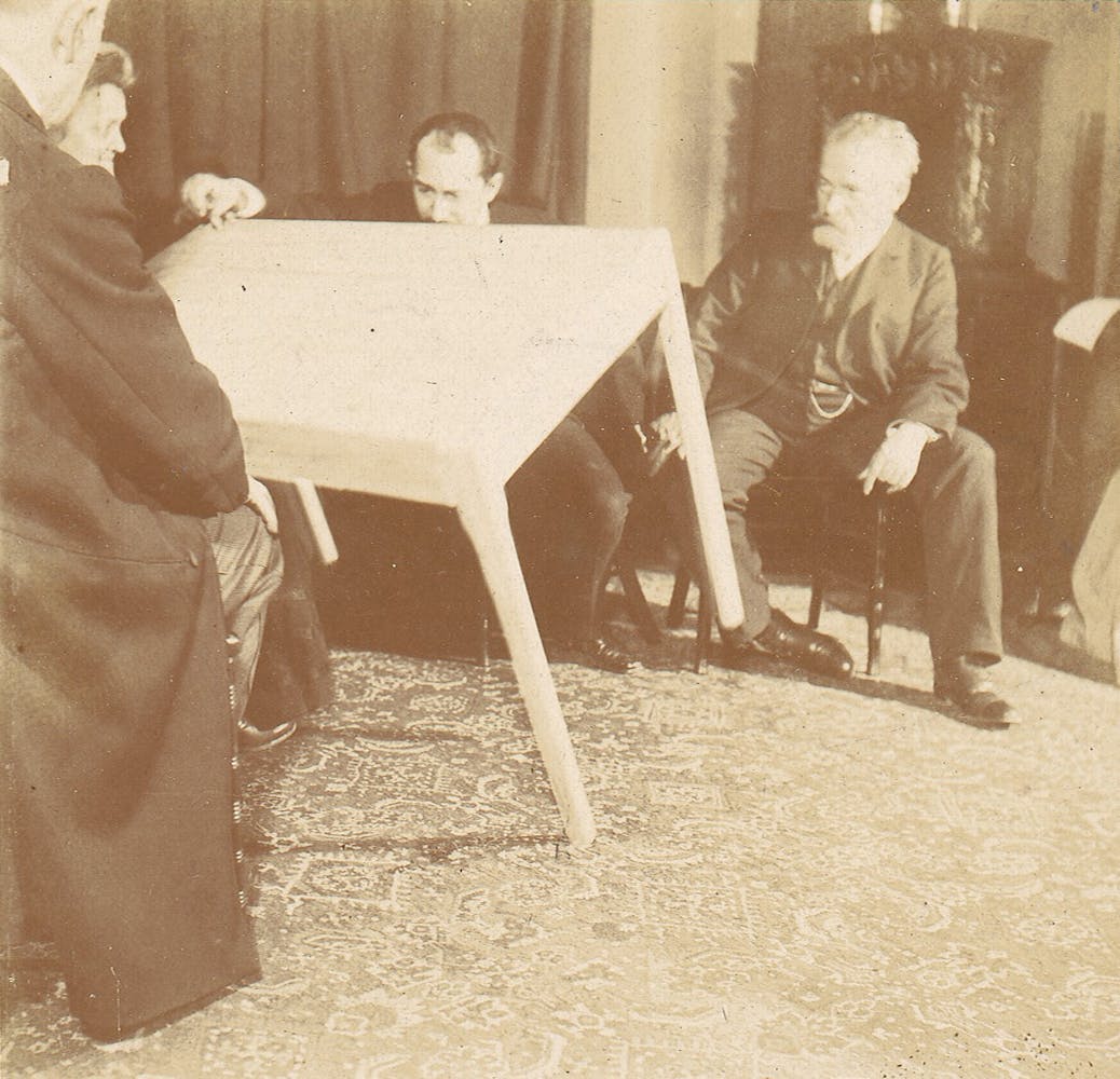 A primary documentarian of ectoplasm, the German physician, hypnotist, and sexologist Albert von Schrenck-Notzing (1862–1929), concluded: “A photograph reproduces only an instant, abstracted from the flow of the living . . . For this reason, the effect it produced could only be crude and deceptive.” Like other photographic representations introduced during the 19th century—microphotography, astrophotography, high-speed motion studies, electrographs, and X-rays—pictures of séances confused the relationship between seeing and knowing.