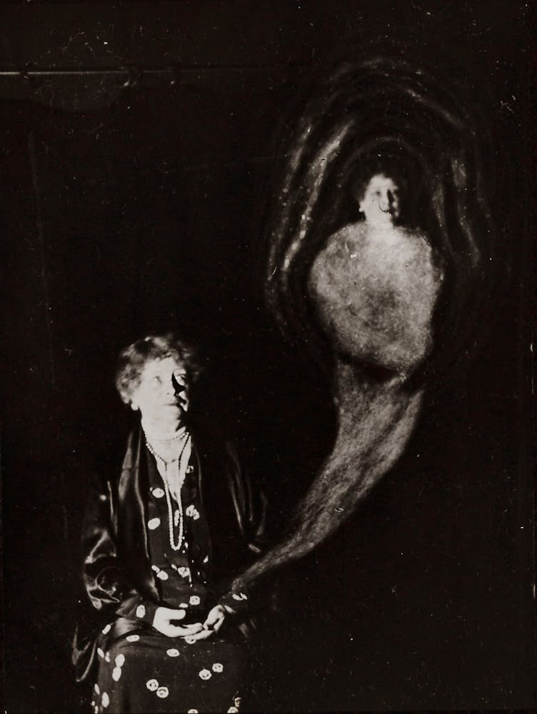 Photographing the invisible didn’t stop in the 19th century. Techniques have been repeatedly forgotten and rediscovered, dismissed and revived, continuing into today. After the Victorian spirit photography craze faded, Sir Arthur Conan Doyle, creator of the hyper-rational Sherlock Holmes, helped revive it between the two world wars. In the 1970s, forms of psychic photography resurfaced in the New Age. Now, digital orb photography has evolved into a Ouija-like communication system.