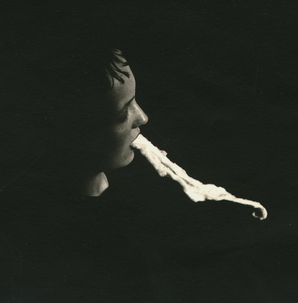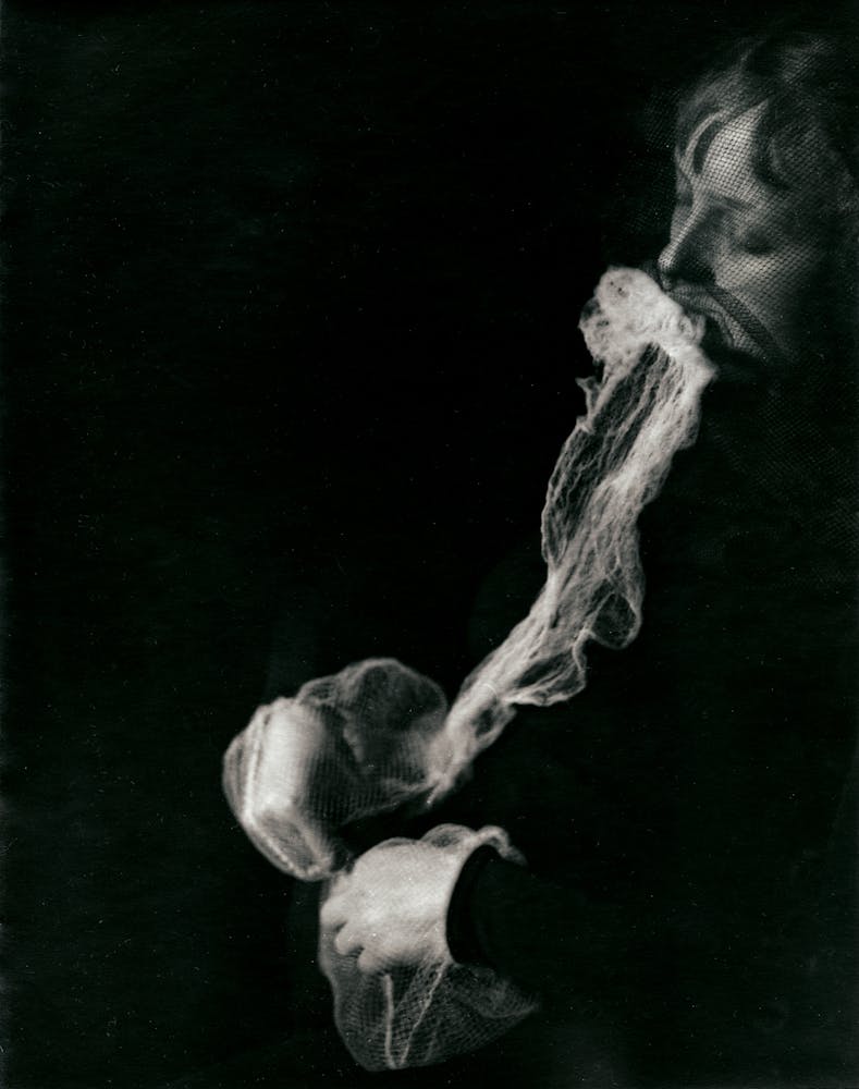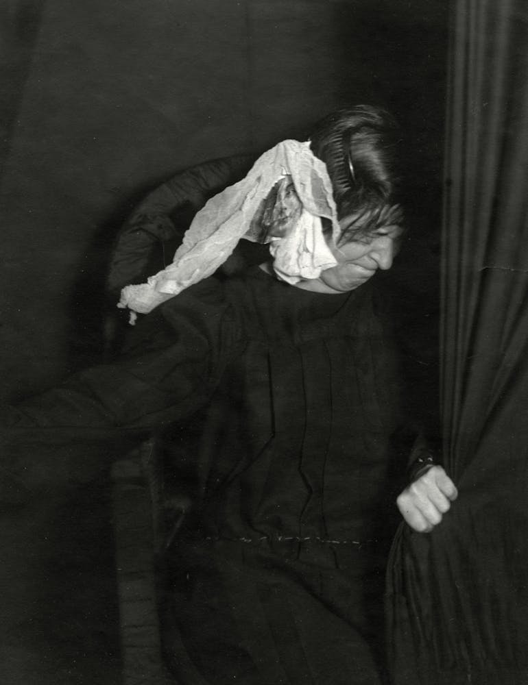 The artist Tony Oursler has cited the wild creativity at work in ectoplasmic displays, comparing its most masterful mediums to avant-garde artists. The ritualized performance of inexplicable acts—complete with bodily transformation, spirit invocation, and sensory theatrics—also resembles shamanic practice. In these images of entranced bodies materializing the dead in the dark, the borders between science, art, and religion break down.