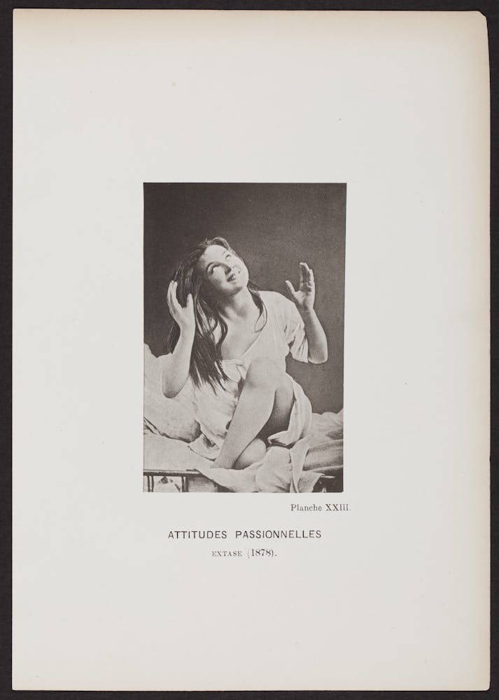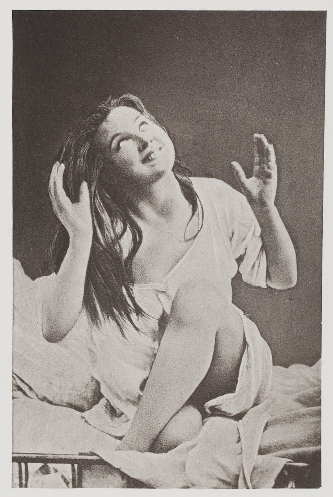 Charcot’s photographs of women in seizure, locked in rigid poses, or caught in ecstatic trance were meant to depict illness. They also suggested the conditions of starlets, saints, or séance mediums. With a clinical approach like that of a film director, Charcot cast specific patients, staged their performances, and orchestrated their responses using hypnosis, electrical stimulation, or even genital manipulation. He invited audiences to witness these events and had assistants capture them on camera.
