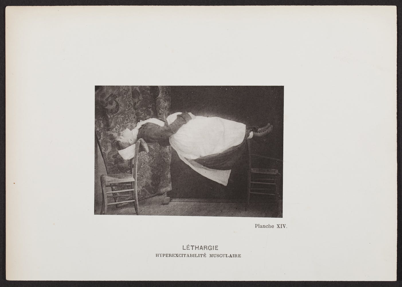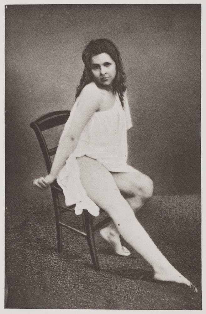 Beyond séances, photography also turned its lens on contorted female bodies in another realm of sensitive inquiry: medical hysteria. Once thought to result from a “wandering womb,” hysteria was theorized as an illness of excessive emotion.