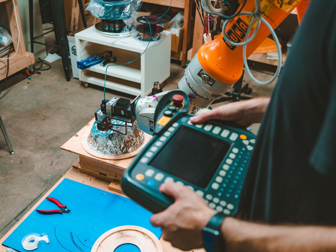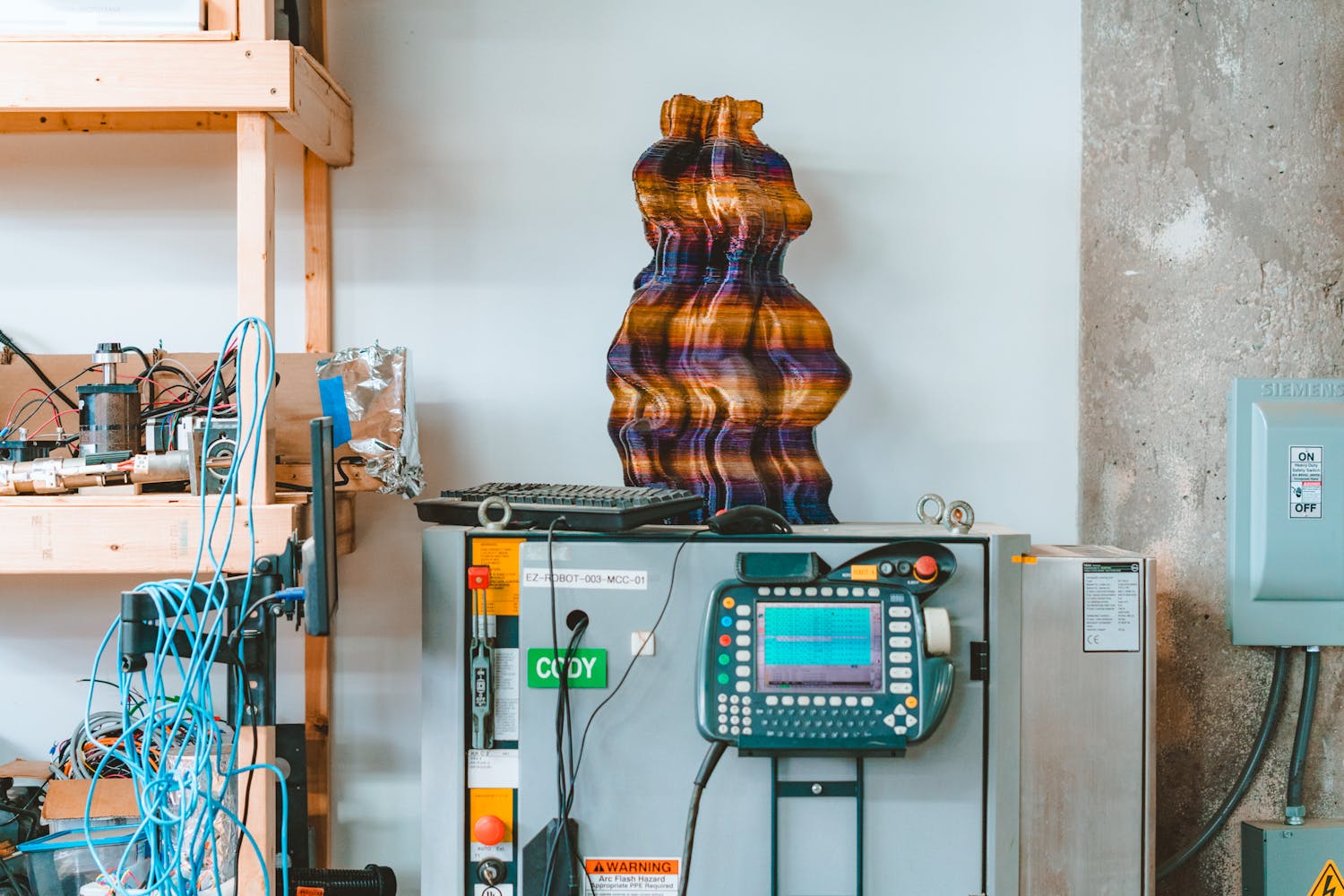 Sure, this automated machine is a tool that typically is doing the same thing millions of times until it is deemed obsolete by an industry. This one was used to spray hot adhesive on car windshields in factories. I’ve altered it so now it 3D-prints small-batch production, anywhere from one to 300 objects.