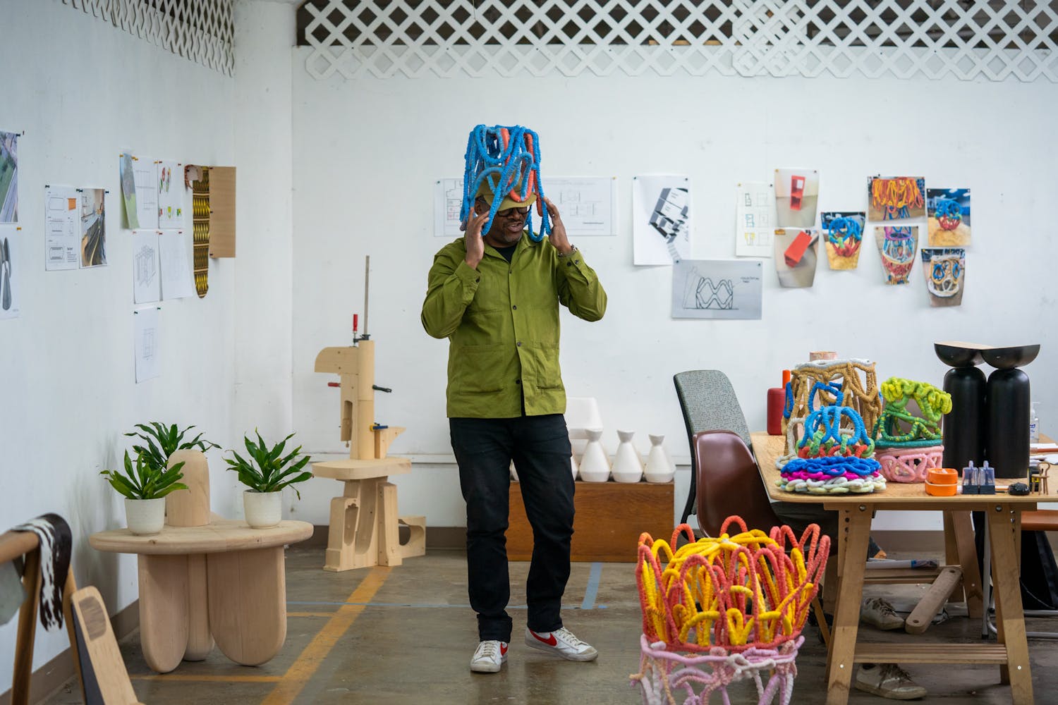 Cody was our instructor throughout the process, starting with how to use plastic extruders and then how to work with particular forms that needed to come outside of the form once it was done. It’s not like we had pre-made a tool we were working with. Our tools were objects that we made with the hopes to get a particular form out of it. My direction was really thinking about African basketry and some of the mouths and vessels that one might see, then trying to mimic that with this recycled plastic material. Those works were created for the Venice Architecture Biennale, which was an amazing experience.