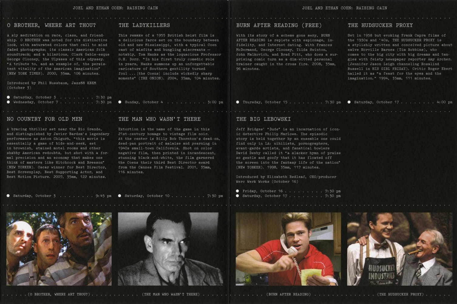 Once called “the Hardy Boys from Hell” by Rolling Stone, the Coen brothers have confounded and at times divided critics and audiences alike. While these genre-bending, period-twisting shape-shifters can be difficult to pin down, it’s abundantly clear that they are filmmakers whose love for the movies is matched by the vastness of their imaginations.