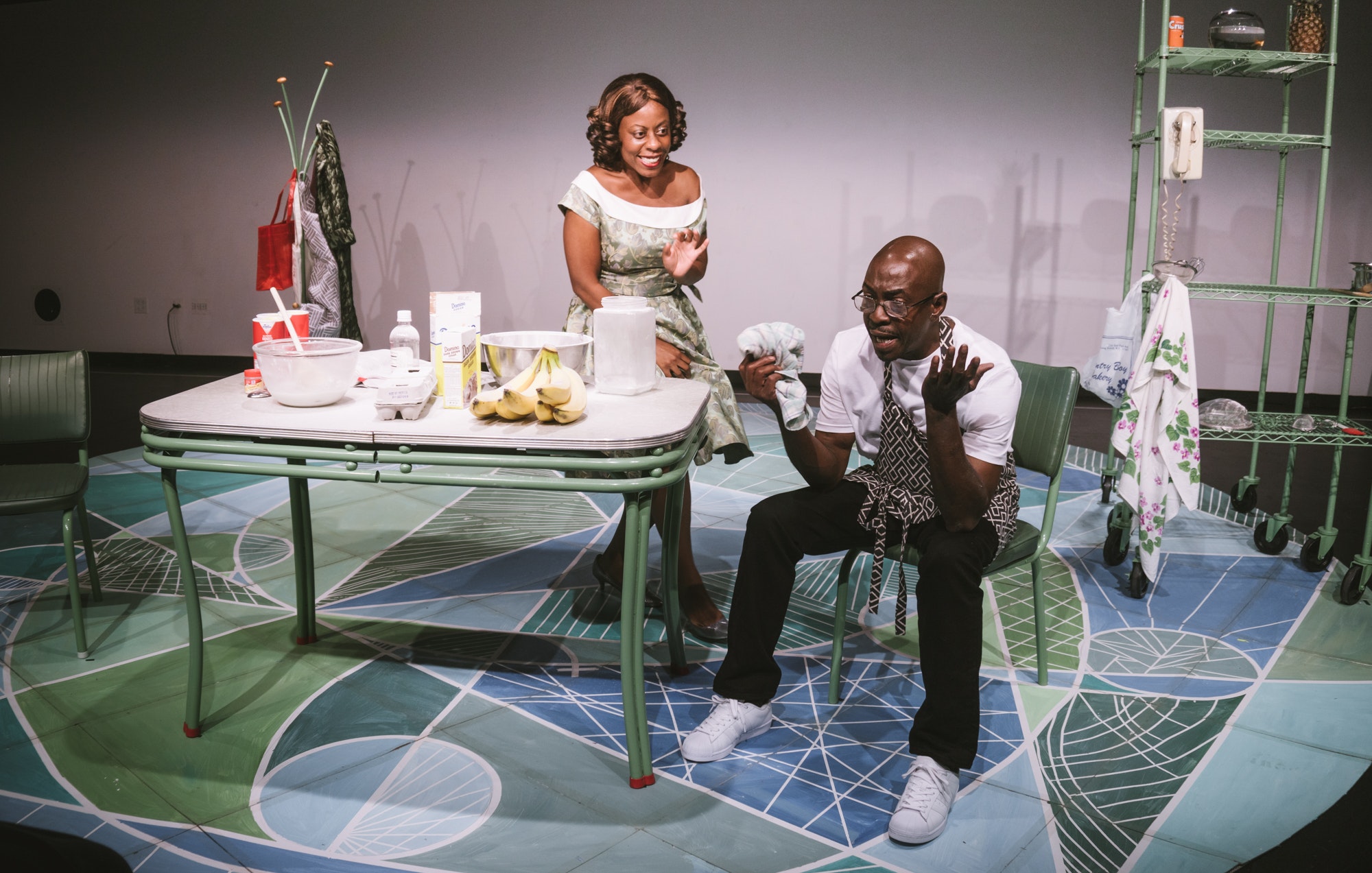 I knew off the bat a kind of sense of the structure I wanted for the piece. That three-act structure, with this monologue from Nate at the top, the sitcom baking fiasco in the middle, and the final section being movement based around the idea of cotillion, as ceremonial entrance into society, and what is a re-imagining of that. But in terms of the words that the actors speak and how those ended up on the page, the first monologue is written by Christopher and has come out of those fish sandwiches he mentioned earlier.