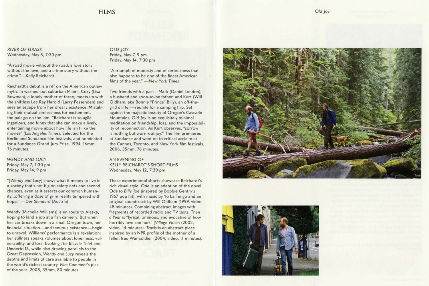 In the ensuing 12 years, she concentrated on experimental short work that she shot on Super 8 film, which was praised by Artforum as “delicate and emotionally harrowing.” Then, while visiting Portland, Oregon, Reichardt was sparked into a return to feature filmmaking. Old Joy (2006), based on a Jonathan Raymond short story and produced by Haynes, was shot in less than two weeks in Oregon. Setting breathtaking vistas against exquisitely small moments, Reichardt’s efforts to capture the mid-decade sense of liberal alienation and ineffectuality met with acclaim: the New York Times called the film “one of the most persuasive portraits of generational malaise—and tentative hope—to come from an American director in recent memory.”
