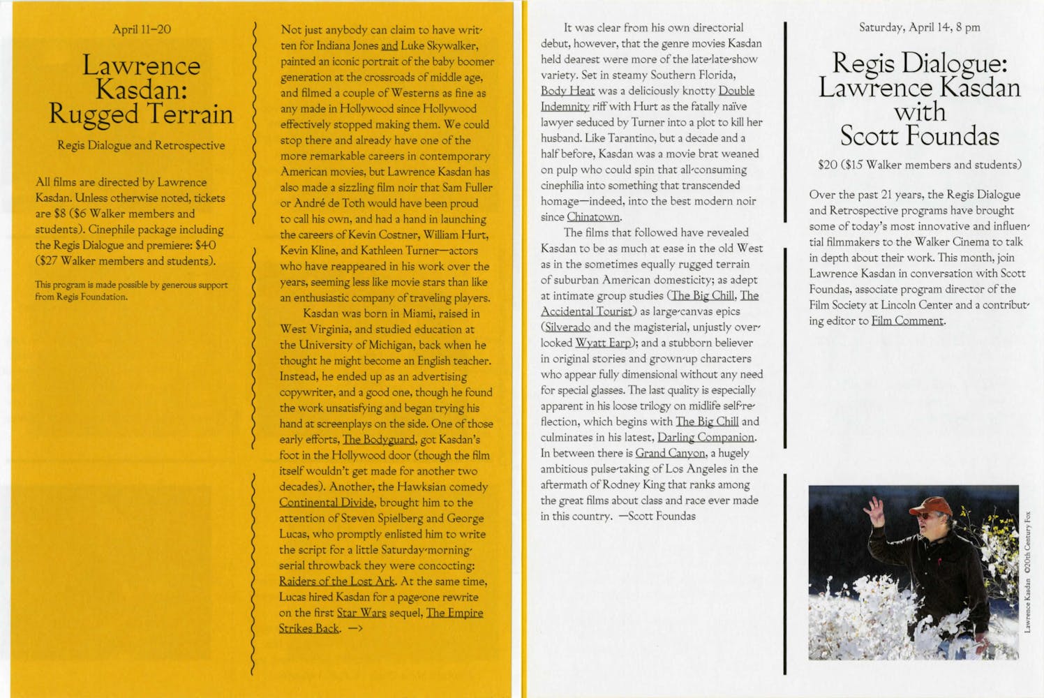 As a screenwriter, Lawrence Kasdan is behind some of the most iconic characters in American cinema (including Luke Skywalker and Indiana Jones). Kasdan is also a successful director and producer. With his script for The Bodyguard (which was eventually made in 1992), he vaulted to Hollywood prominence. After working on screenplays for Steven Spielberg and George Lucas, Kasdan made his directing debut with Body Heat (1981). Kasdan has proved himself capable of creating in every genre—from modern westerns(Silverado, Wyatt Earp) to dramas (The Accidental Tourist, The Big Chill, and Grand Canyon). Onstage at the Walker, Kasdan is accompanied by Scott Foundas, associate program director of the Film Society at Lincoln Center and a contributing editor to Film Comment, for an in-depth look at Kasdan’s career. Recorded in 2012.