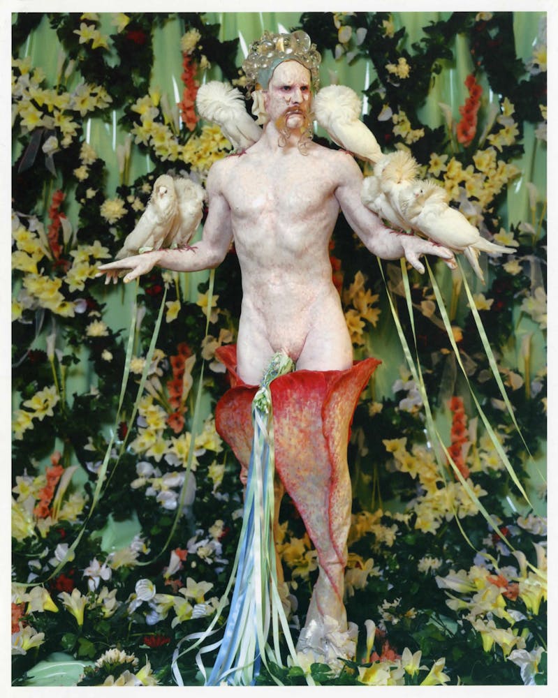 The eccentricity of the cremaster conceit provides perfect entry for understanding the incredible fullness of the world Barney conjures up in the cycle. The films were, like Star Wars, shot out of order (4,1,5,2,3), traveling through time and across geographies. Each is populated by its own unique creatures and contests, quests and challenges. To achieve a mythic density, Barney draws from sources as disparate as Celtic legends, Mormon texts, Masonic rites, Oakland Raiders’ game strategies, Harry Houdini’s repertoire, and the crimes and redemption of a particularly American murderer, Gary Gilmore. In all of the Cremasters (except 1, which lays out the cycle’s biological conceits), Barney plays a protagonist in pursuit of his own self-realization; that pursuit (not always achieved) is attempted by engaging in a series of challenges. His auto-protagonists are cut from the same cloth as Oedipus or Parsifal or Luke Skywalker and similarly share that inherent human flaw of hubris. (It is worth noting that all of his work has found room for a consideration of hubris as both motivation and mortification.)