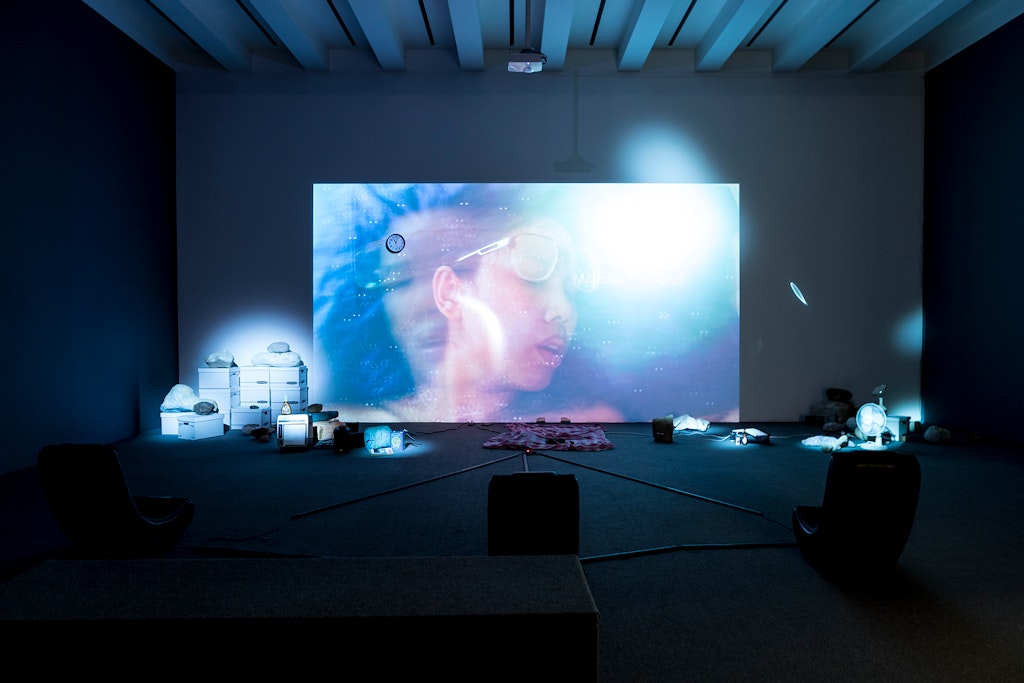 Hassabi was highly deliberate in conceiving of her own “archival constellation,” at once setting out a clear path for the use of her materials and ensuring that no future curator selects these willy-nilly. STAGING: solo – archival (2018) suggests the space and traces of a live performance: taped markers (a “Spike Mark” and “Pink Line”) are spatial cues for the missing performer, while an outfit on a mannequin suggests the vacated body. The accompanying moving image material shows STAGING at the Walker in 2017: we see the light sculpture, the quartet, and solo, all set to a spare Erik Satie–esque score by Marina Rosenfeld. The footage captures the dances both with and without audiences: the camera steadily pans past the quartet alone in Cargill Lounge, while in the galleries we see visitors simply ignoring the solo or, perplexed, asking gallery guards for more information.
