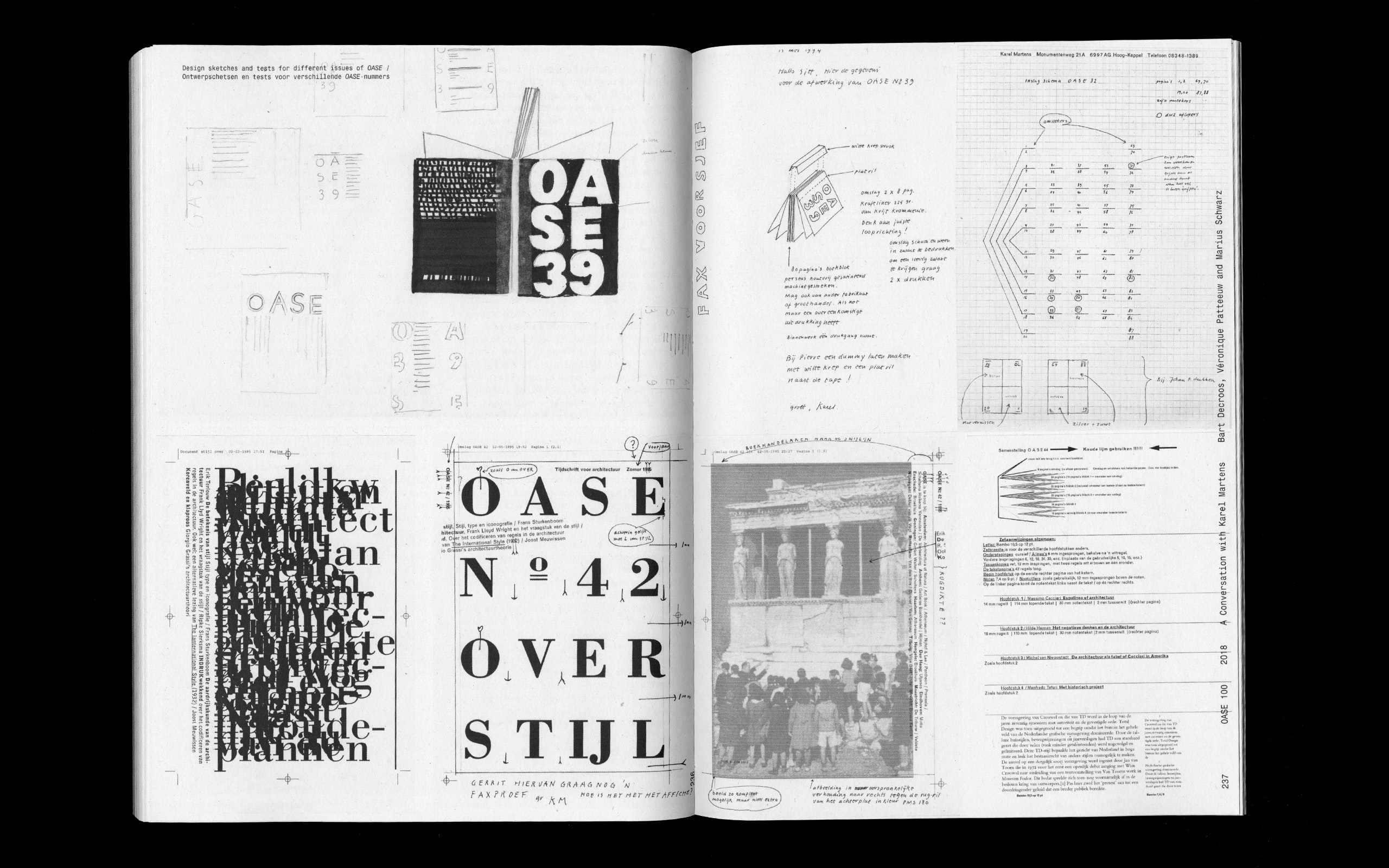 A number like 100, of course, asks for something out of the ordinary. Since OASE already compiled a classical jubilee issue with a selection of its best contributions for issue 75, they wanted to do something different for issue 100. Probably also to avoid having to pick one architecture related topic over the other. The collaboration of OASE and Karel is quite exceptional. He designed the magazine for more than 28 years now, so I think it was the right time to do something highlighting this relationship.