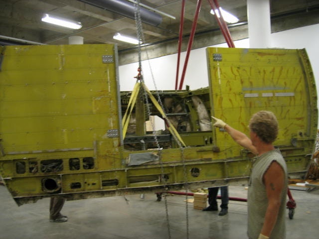 Our plane had been cut into seven pieces at the bone-yard in California and arrived in a jumble at the museum. Re-assembly plates accompanied the jumble and I set about learning how to put the nose of the surveillance plane back together. I cleared out leaves, dust, Pepsi cans and bugs which were testimony to the length of time this plane had sat waiting for H Y Ping to designate it as part of an art work.