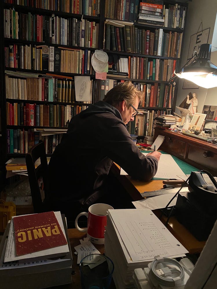 “The world has changed in ways that we could not have conceived,” he says. “Literally the whole world is experiencing this one thing, and it’s rife with criminality. Being in this moment awakened in me the need to skip the nuance and just go straight for the fucking jugular. I gave myself permission to do it.” He says that because he hasn’t drawn—or thought—like this in decades, “I feel like I can sustain this basically indefinitely because it’s been pent up for such a long time. It’s no holds barred.”