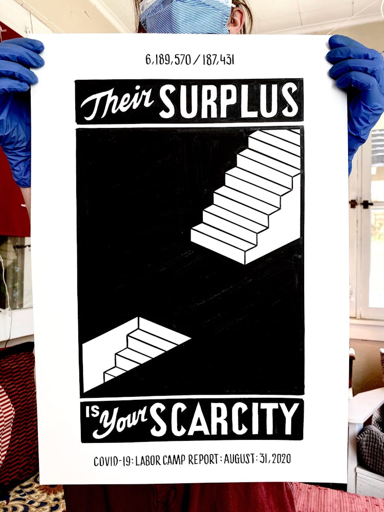 In America, we are experiencing the pandemic as a phenomenon framed by the deadly “neighbors” of racism and greed. The Regime not only allows the disease to decimate the country, but it also strategically utilizes it to further disenfranchise the vulnerable, and profit from mass death and illness.