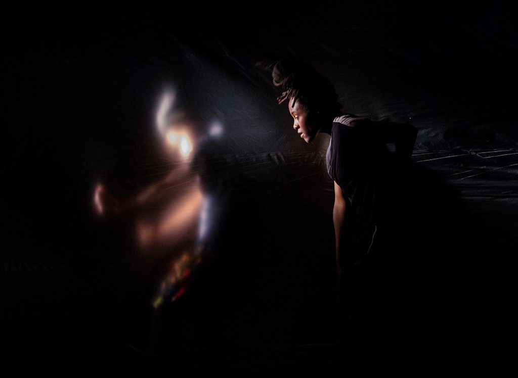 Okwui Okpokwasili: It feels like a continuation. It seems there are a number of experiences from all the past projects now coexisting at once. There’s a cosmology to this universe and we are receiving signals from it. For me, it begins with Come Home Charley Patton. That’s one way Scaffold Room is different. In the other pieces there was also a collective community of people negotiating a dangerous proximity of our bodies and figuring out what that language was together, and now I’m alone. But I carry the memory of their proximity.