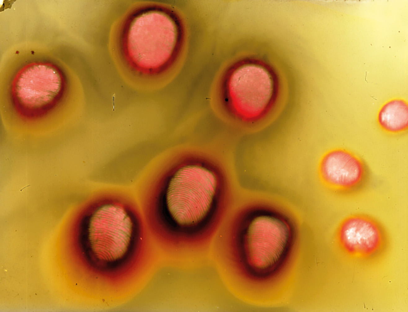 - Fluidic photograph obtained by applying fingers to a photographic plate, Louis Darget, c.1899.