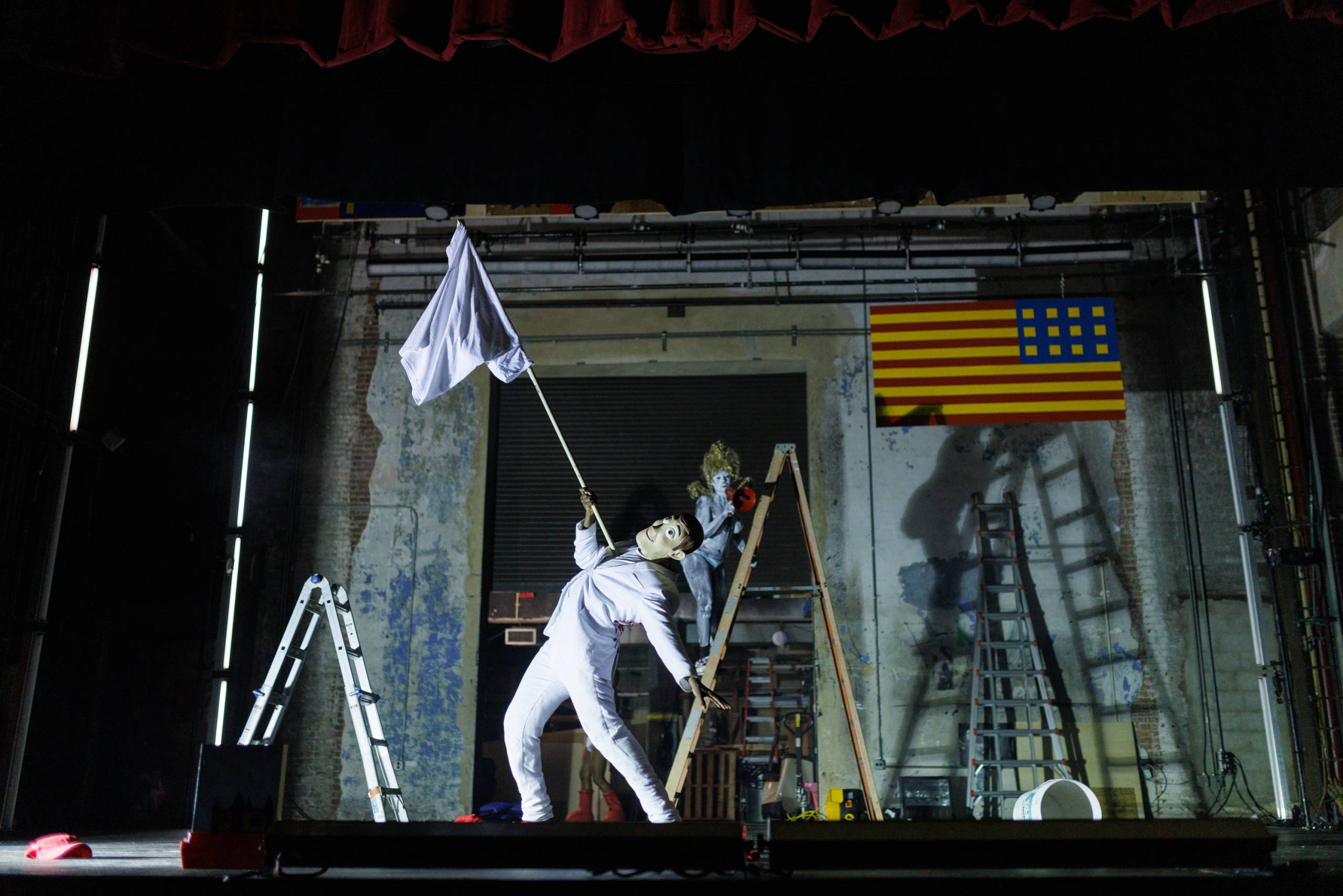 Here’s a gallery of amazing shots that my colleague Emily Taylor took at last night’s dress rehearsal for The Success of Failure (or, The Failure of Success) – click on any one to see it larger. These are from the futuristic first act of the piece; for more behind-the-scenes images – and a handy, concise guide to Hopkins’ universe – see the directly preceding posts on this blog. Then click here for tickets – it’s going to be a fantastic show.