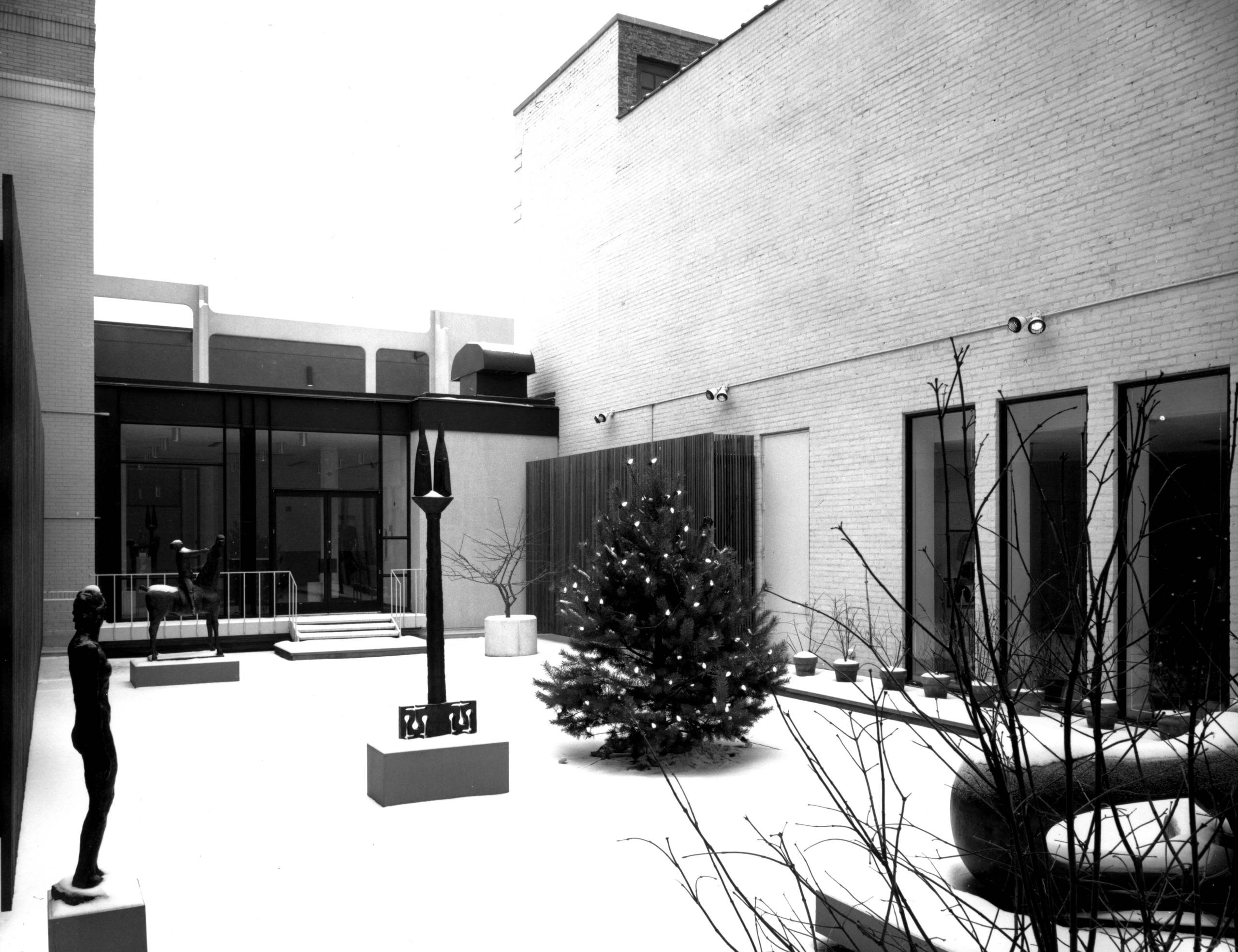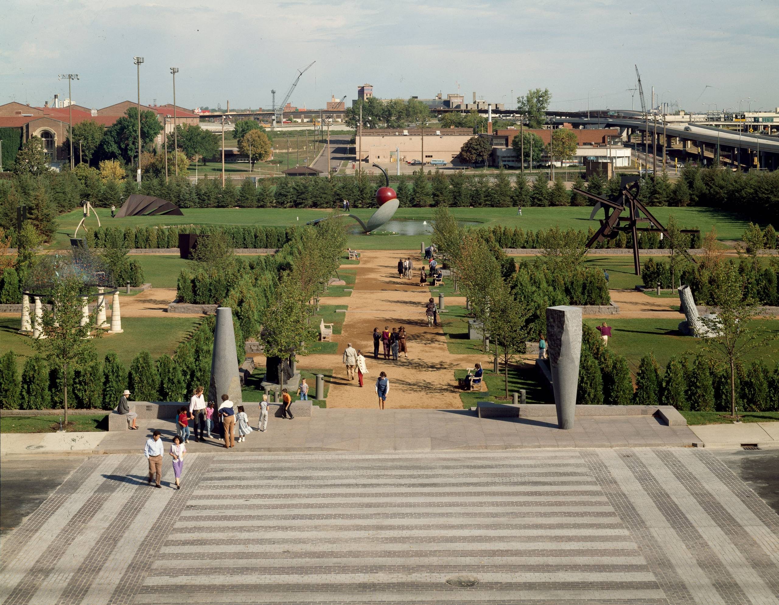 While no sculpture court existed in the 1971 Barnes building, the architect and the Walker’s director began working on a sculpture garden once the museum opened. It would not become a reality until almost 20 years later, when the Minneapolis Sculpture Garden debuted. The original garden used a classical style: a courtyard with four courts and a fountain.