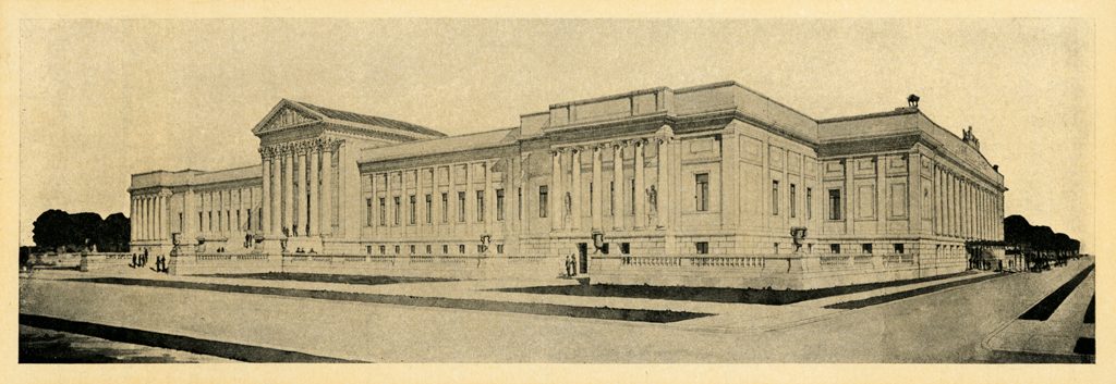 Centuries later, the United States experienced a boom in art-collecting and museum-building, referred to as the American Renaissance; it was also inspired by the Greek and Roman classical period, as well as by the Italian and French Renaissance. During this period of the 1800s, the architects McKim, Mead, and White designed many public buildings: these included the Brooklyn Museum of Art in 1897, the wings of the Metropolitan Museum of Art in 1912, and the Minneapolis Institute of Arts (Mia) in 1915. In the plans for Mia, a sculpture hall is to the left of the main entrance, which resembles a Greek temple.