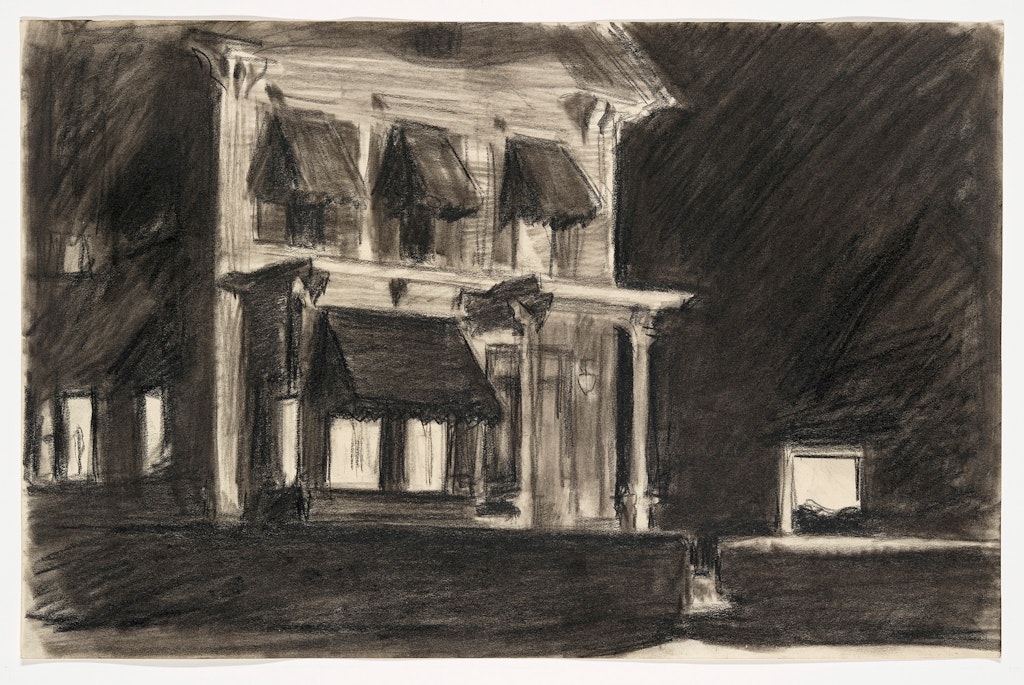 Hopper was born in Nyack, New York, and studied fine art at the New York School of Art. There he worked with Robert Henri, a prominent realist painter who urged his students to find their subjects in the everyday world around them. After graduating, Hopper took several trips to Paris, where he saw the work of Edgar Degas and Édouard Manet, two of the most inventive painters of modern Parisian life. The twin influences of advanced American and French realism remained crucial to Hopper’s work for the rest of his life.Achieving Success, Office at Night