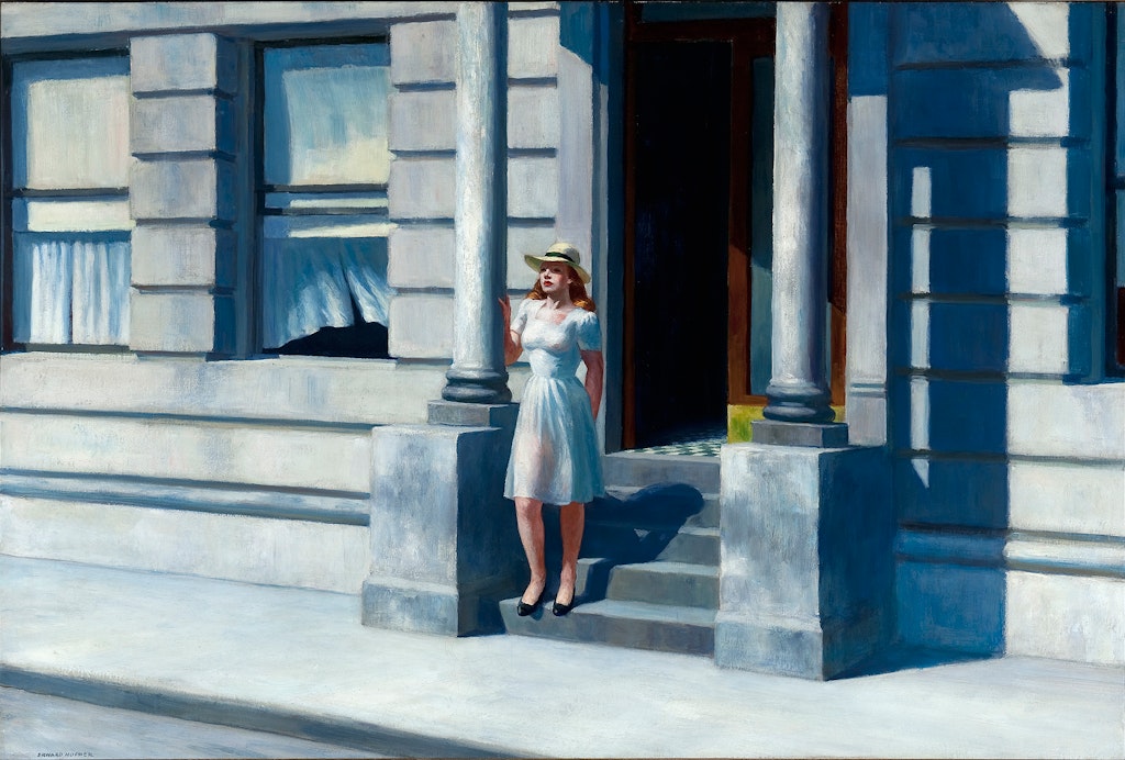 Luminous, spare, and evocative—the paintings of Edward Hopper are affectionate observations of American life featuring subjects that range from diners, hotel lobbies, offices, and theaters in New York City to the country houses, churches, seascapes, and Main Streets of rural New England. All of these artworks have one thing in common: Hopper’s fascination with light. He painted sun streaming through curtained windows, clapboard farmsteads in the warm glow and long shadows of late afternoon, and starkly lit interiors framed by darkness. Dramatic illumination makes Hopper's pictures strongly cinematic, although they never offer a complete narrative. Instead, they hint at the artist’s deep love for the natural world and his intense curiosity about his fellow human beings.