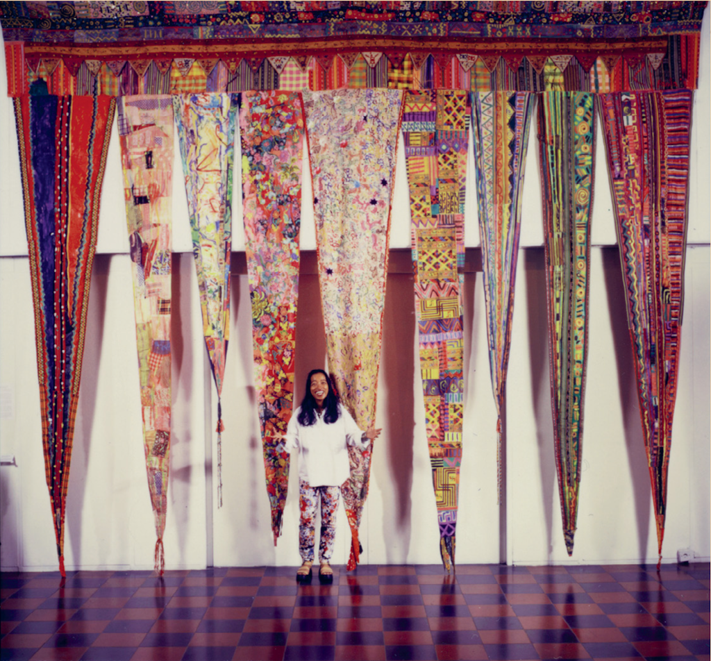 Pacita Abad (1946–2004) was a Filipino-born American Ivatan visual artist. Her more than 30-year painting career began when she traveled to the United States to undertake graduate studies in Spain. She exhibited her work in over 200 museums, galleries and other venues, including 75 solo shows, around the world. Abad’s work is now in public, corporate and private art collections in over 70 countries.