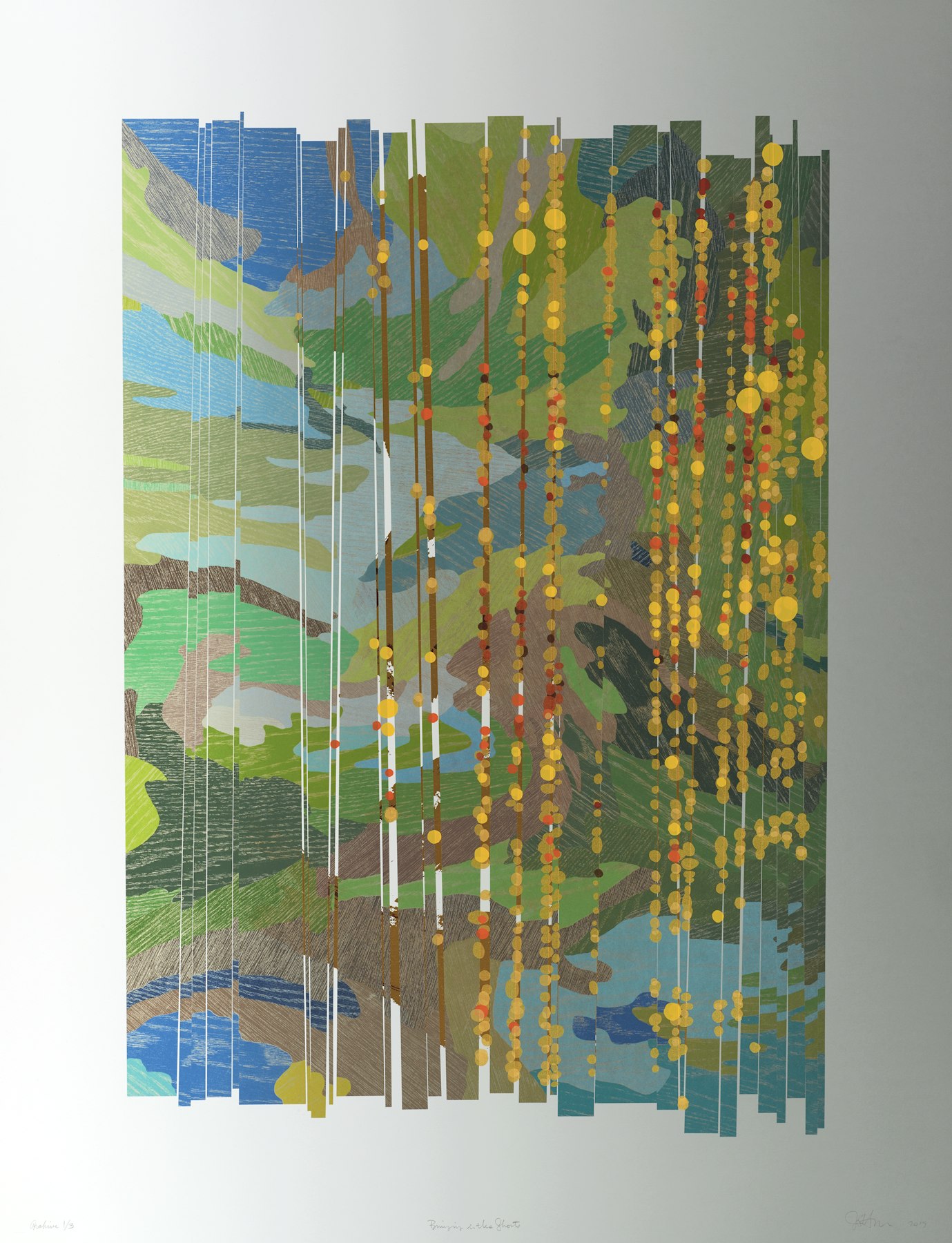 - lithographic, relief, screen and pigment print, collage and metallic foil on paper