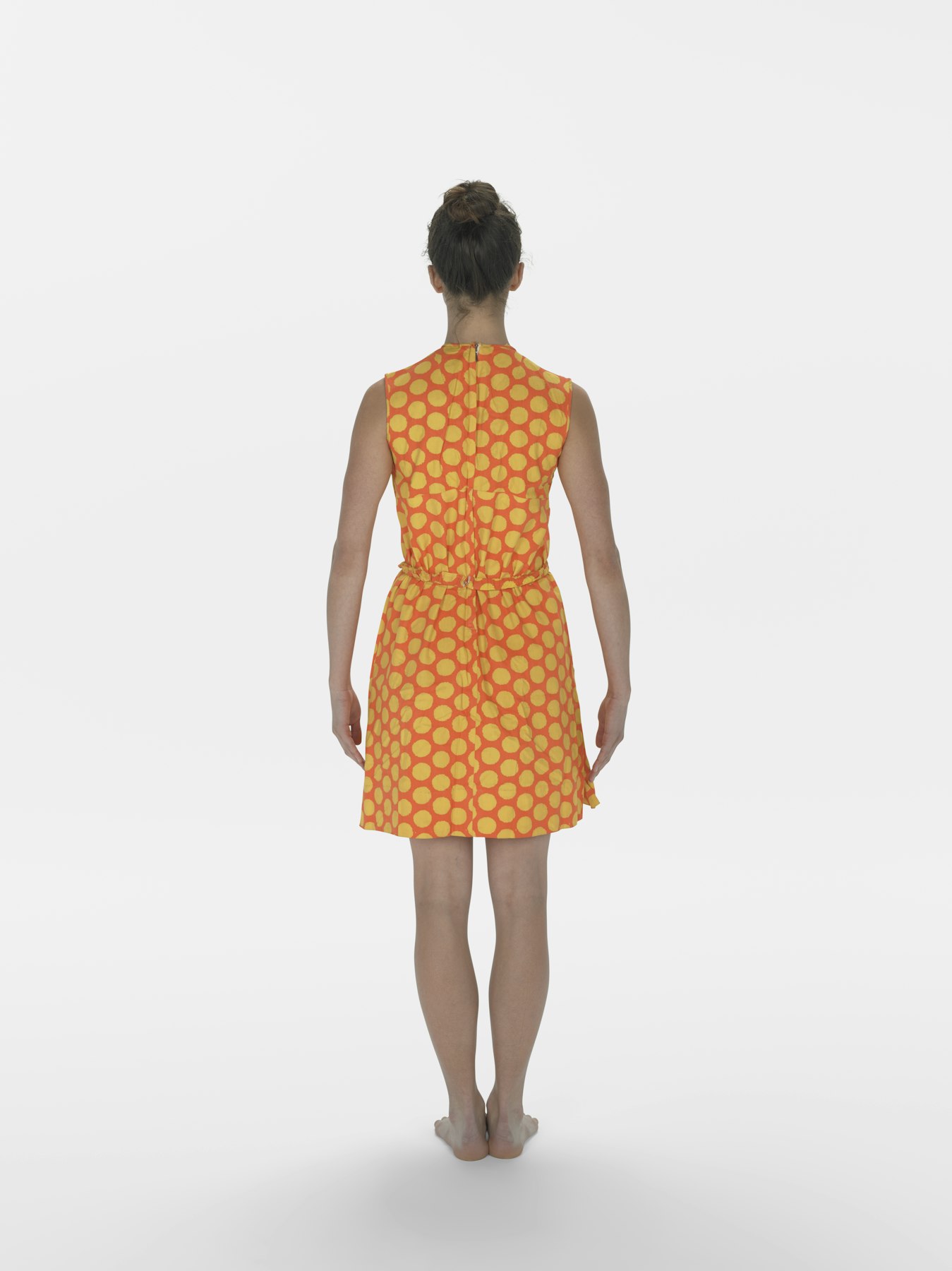 - V-neck t-shirt bodysuits, sweat pants, tank leotard cotton shirt with metal zipper, assorted bathing suits, camisole leotards, mini dresses, apron dress, smock, romper suit with shorts, romper suit with bell bottom pants, waist sashes, footless tights