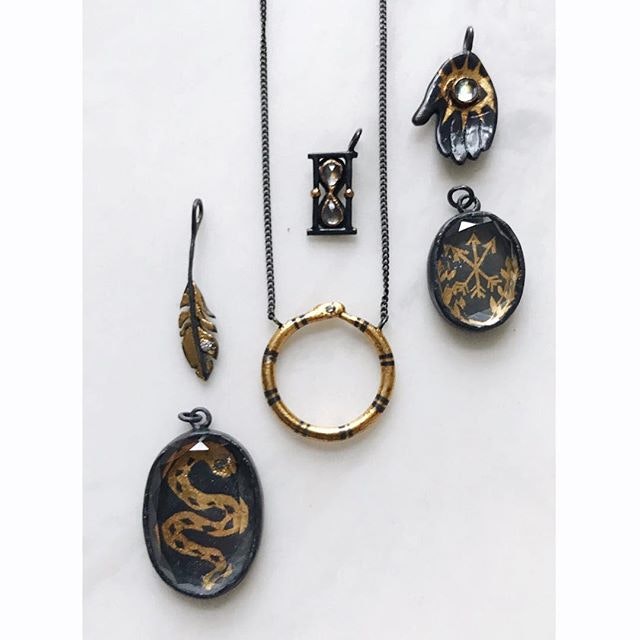 Her background in fine art and art history informs her work, as she finds inspiration in sources from Ancient Roman adornment, to Medieval manuscript illumination. She works in her home studio in Central Minnesota, where she lives with her husband and two children.