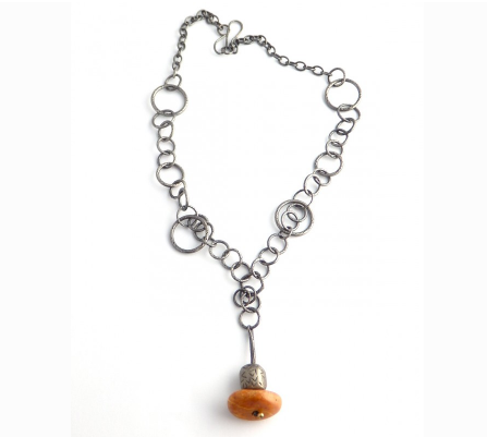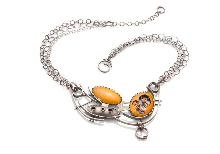 Barbara Stellmach is a self-taught metalsmith who works primarily with sterling silver and incorporates precious and semi-precious stones, Lake Superior stones, laminate, resin, spray paint, Keum-boo, filament, and fiber into her designs. Stellmach draws inspiration from the materials she works with, mid-century design, and the great Northwoods that surround her. Clean lines, texture, color, and movement also play a role in much of her work.