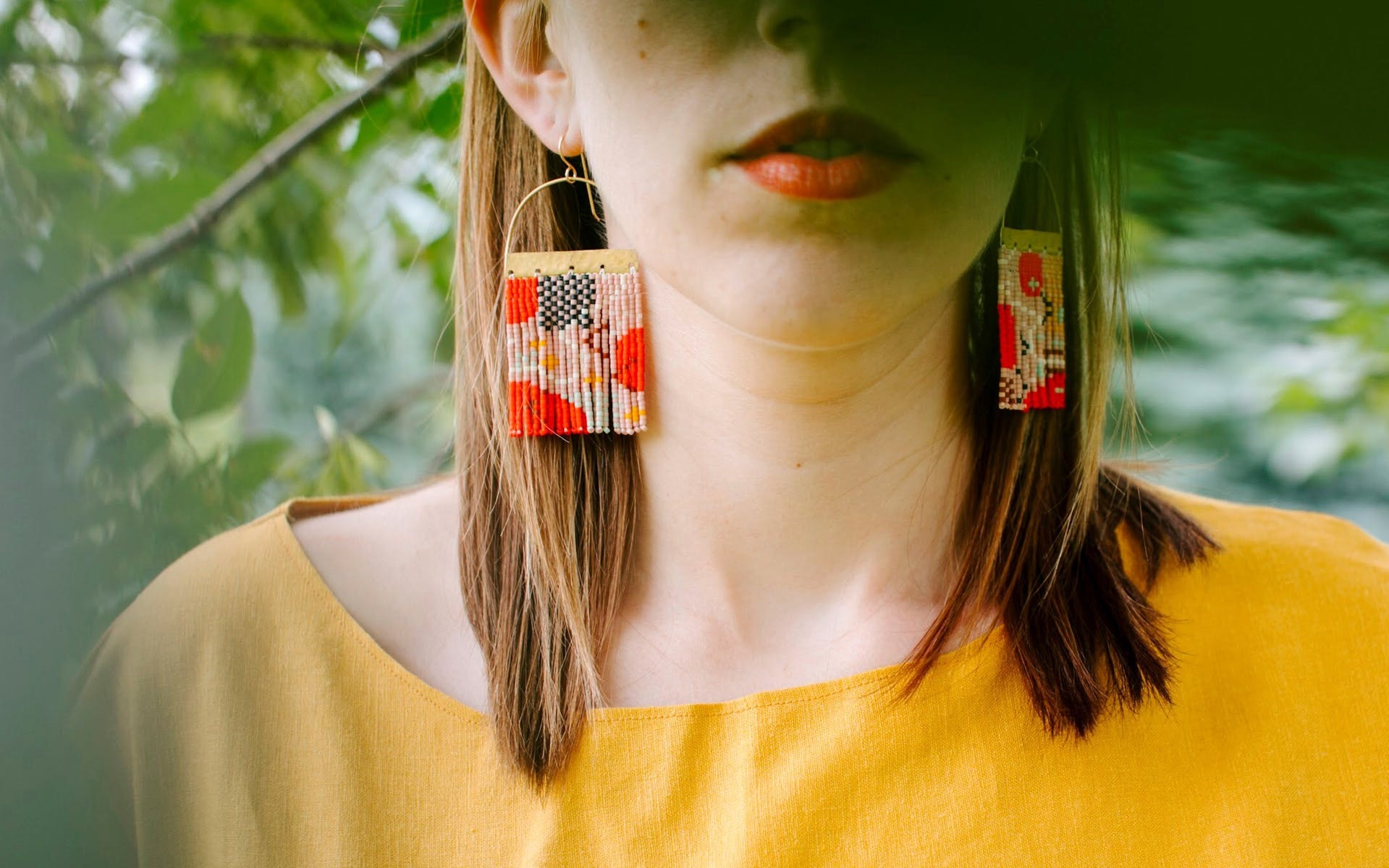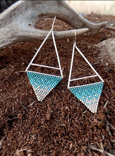 Ashley Delmonico is the designer and creator behind La Donna Jewelry. She is often traveling as she creates, picking up inspiration from mother nature as she goes. Originally from Minnesota, she now lives and creates in a travel trailer with her husband and fat, black cat. Much of the inspiration she picks up along the way comes from the beauty of American landscapes, her most cherished being the deserts of the American Southwest. Delmonico hand solders each pair using sterling silver or brass before attaching the hand woven glass seed beads. La Donna Jewelry is made with the intent to take each person who puts on a pair to a place where their uniqueness feels like their greatest strength.