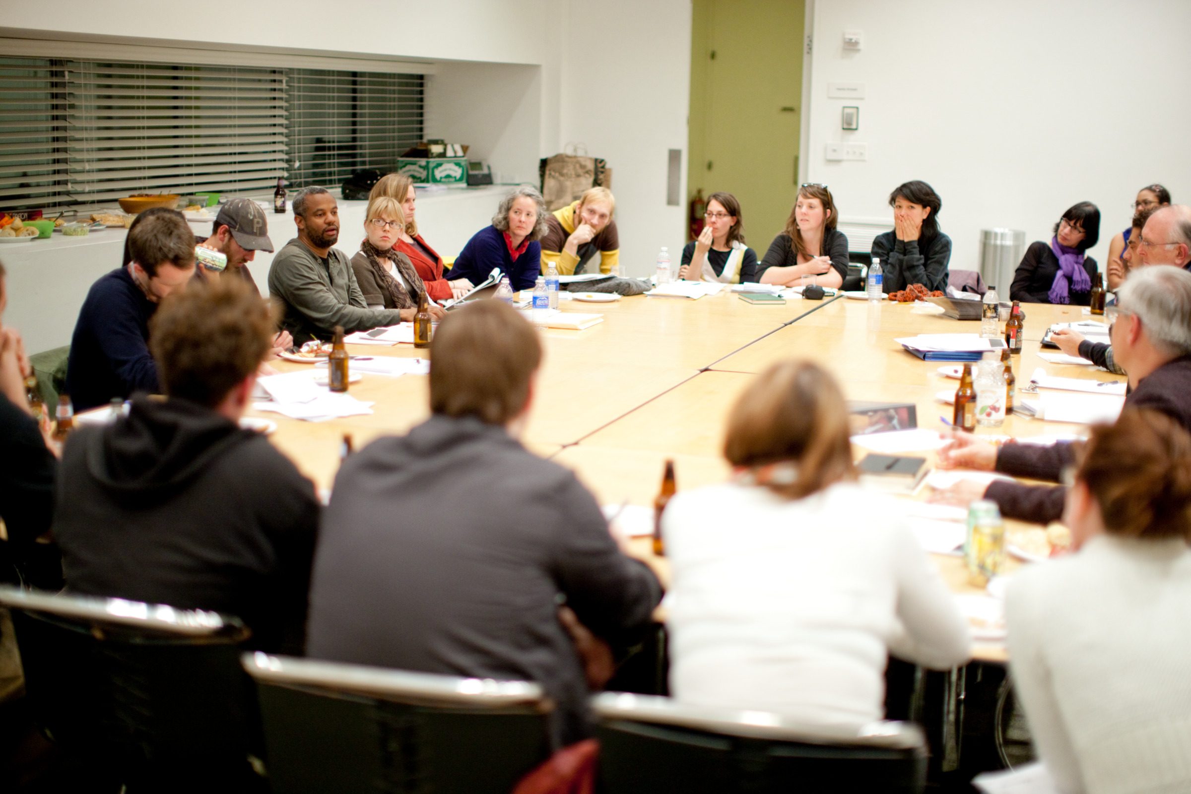 The Crosby Conference Room features a flexible meeting space with high ceilings and views of the Minneapolis Sculpture Garden. This versatile space includes a modular conference table that can be easily reconfigured for smaller groups, built-in projector and screen, and lighting that can be set for daytime use or for an intimate social gathering.