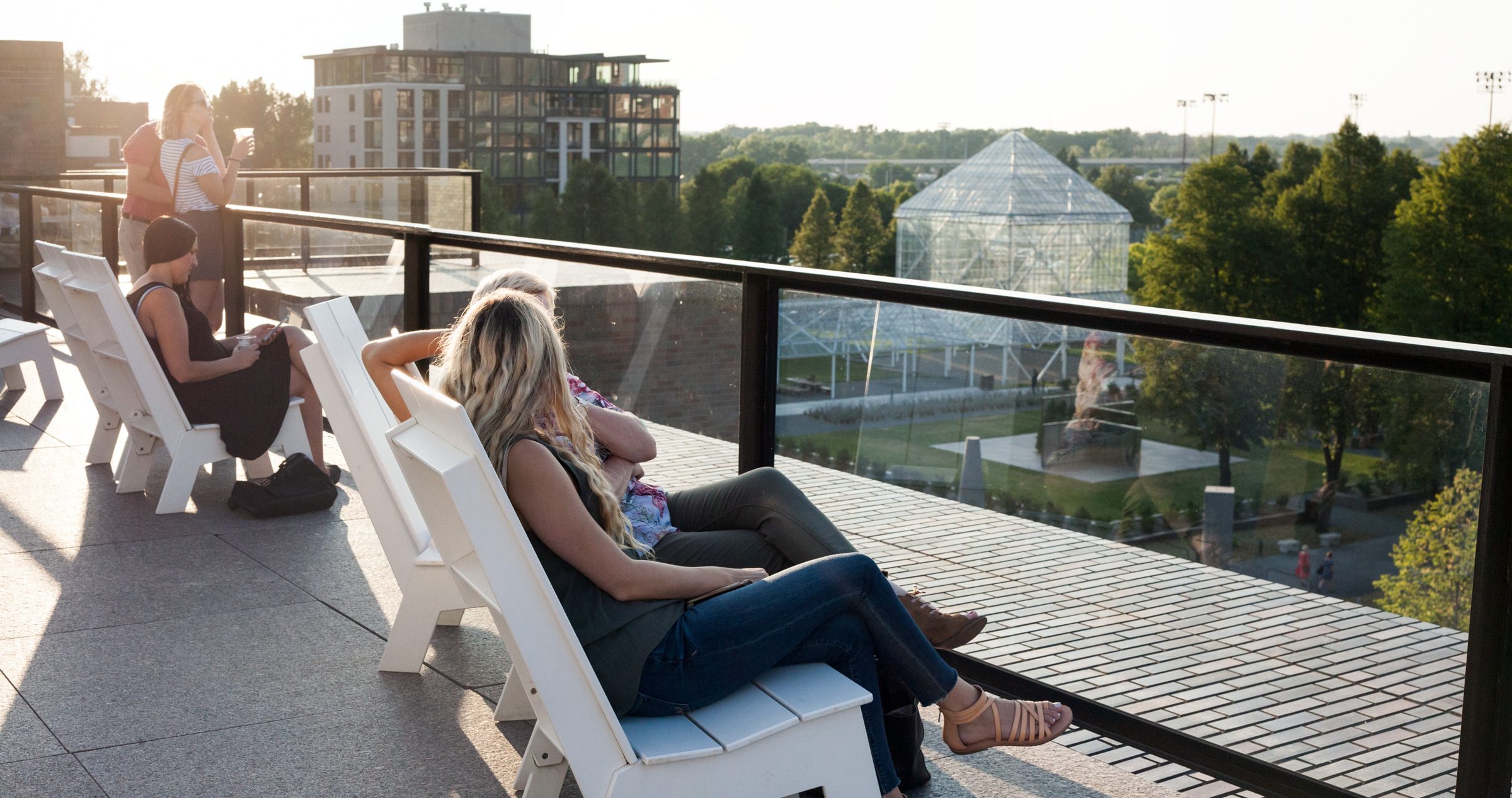 The Garden Terrace Room features 180-degree views of the city of Minneapolis and the Minneapolis Sculpture Garden. With floor-to-ceiling windows and private outdoor terrace spaces, the Garden Terrace Room is a unique indoor/outdoor wedding or corporate event venue.