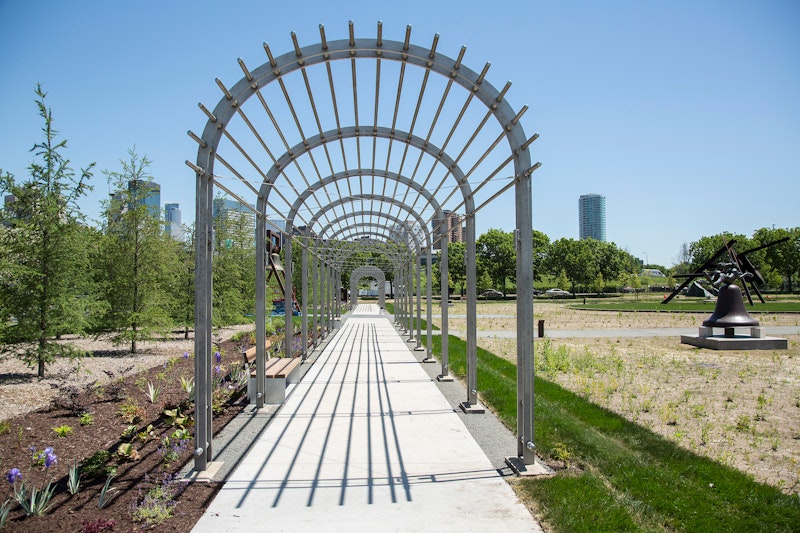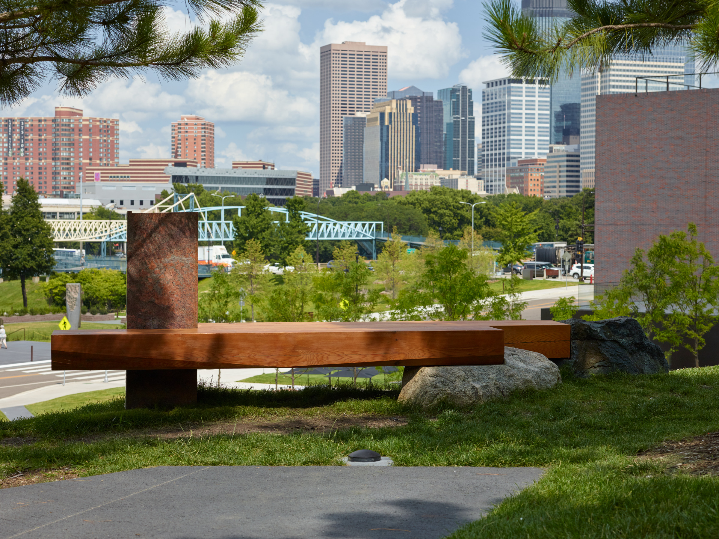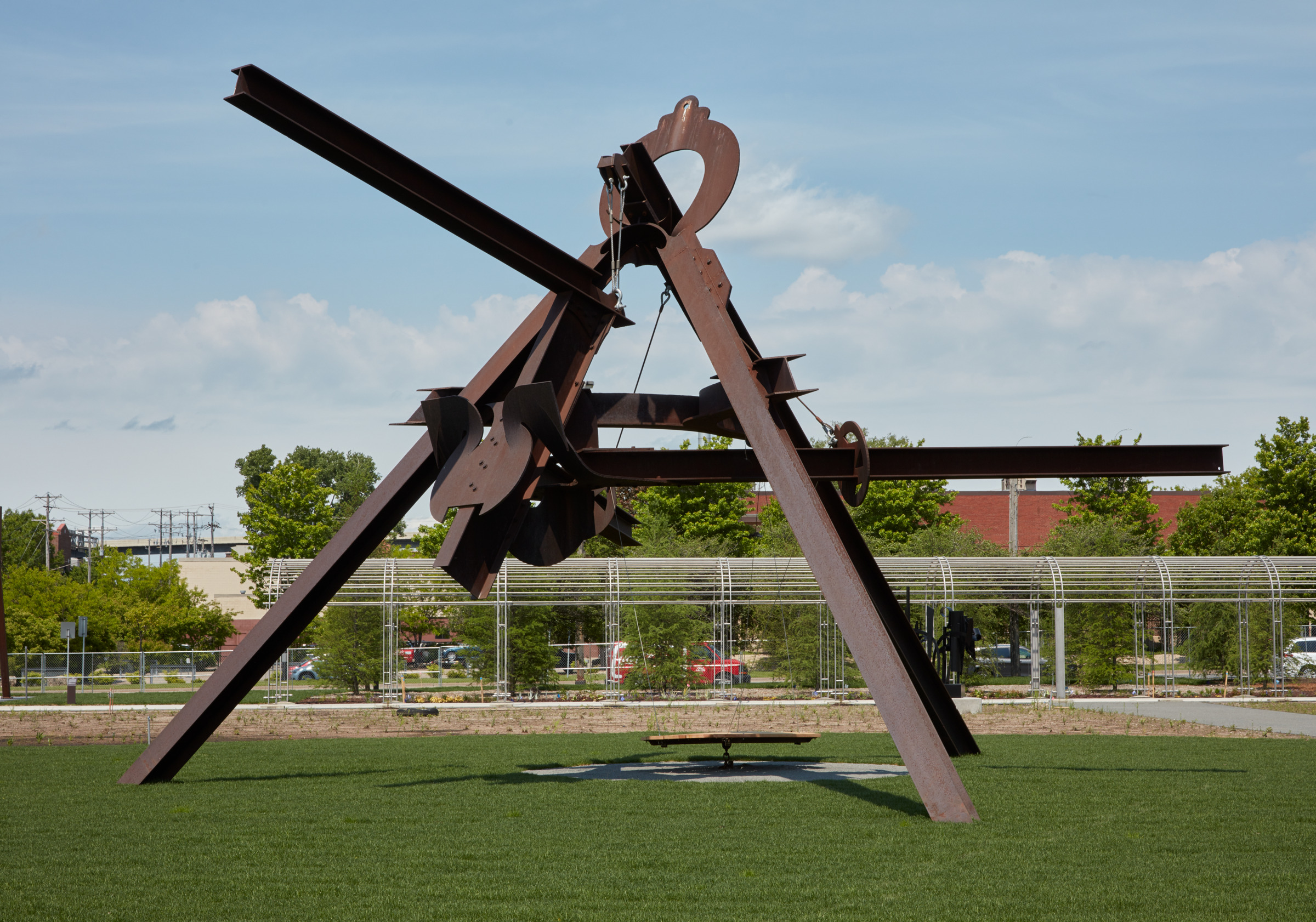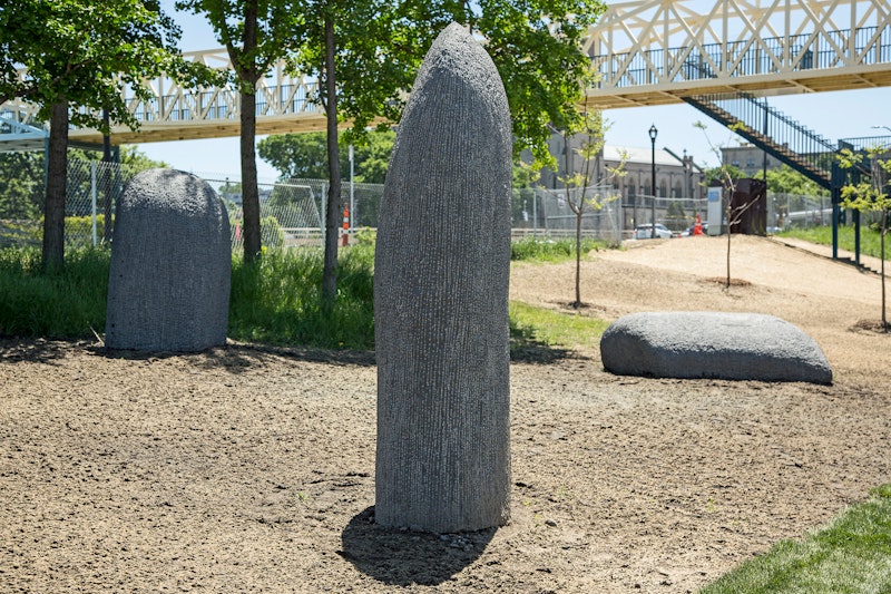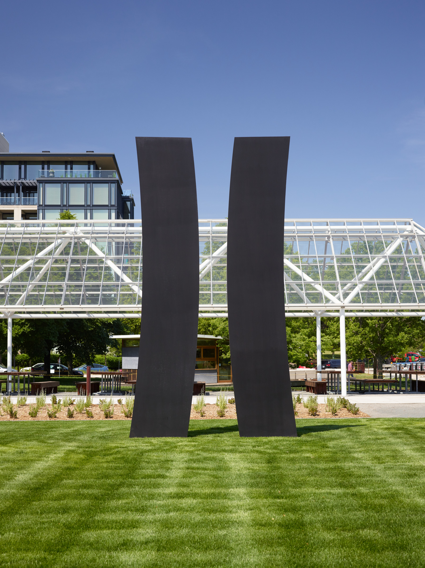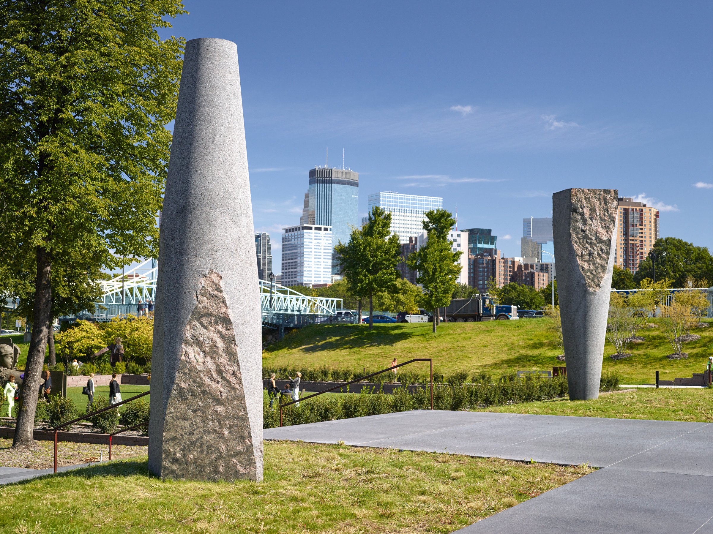 Improving the park’s sustainability, a fresh meadow filled with native plants and engineered soils helps absorb runoff from stormwater, returning the landscape to a more natural state. This environment is interspersed with three “islands” that showcase contemporary sculptures from the Walker Art Center’s collection.