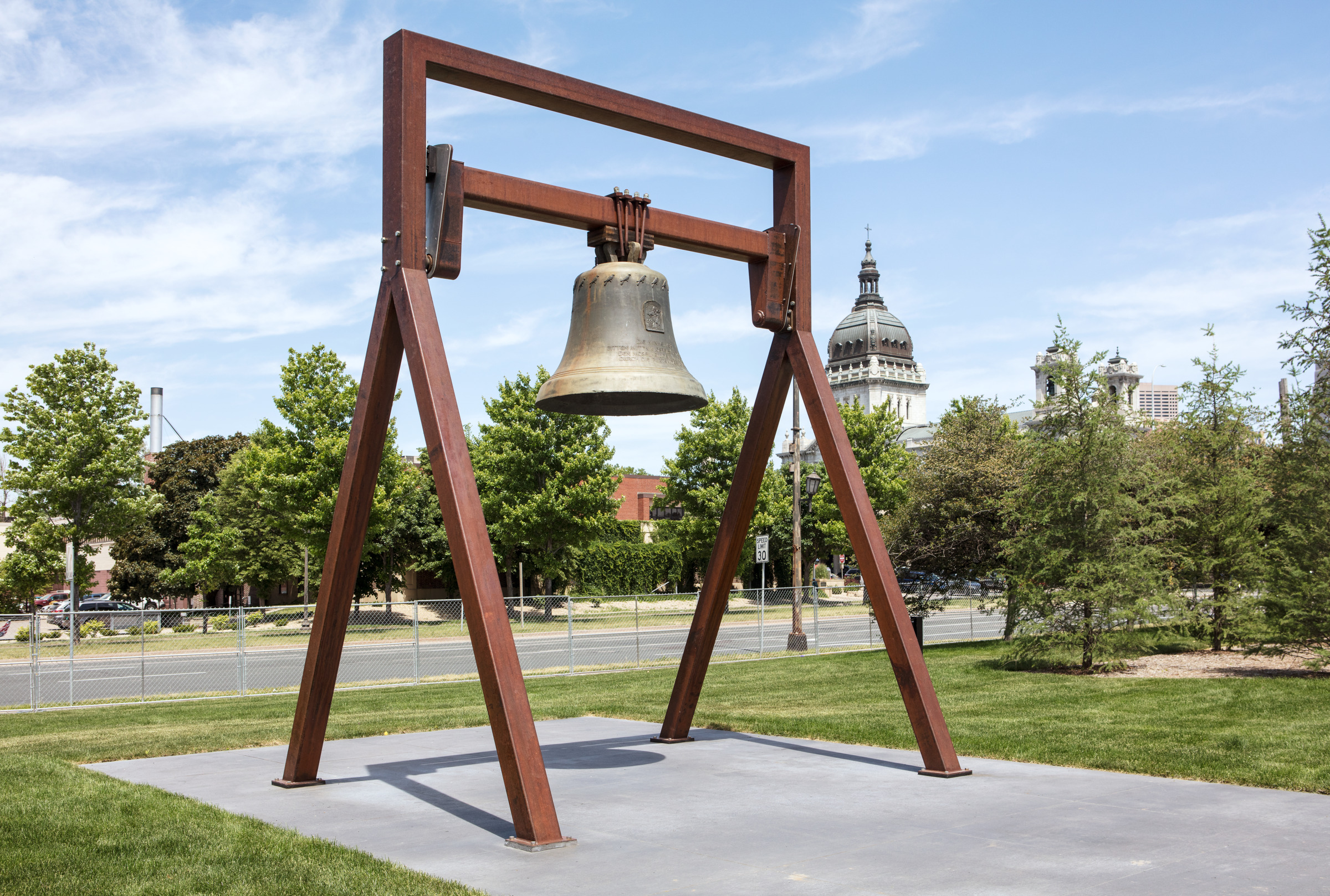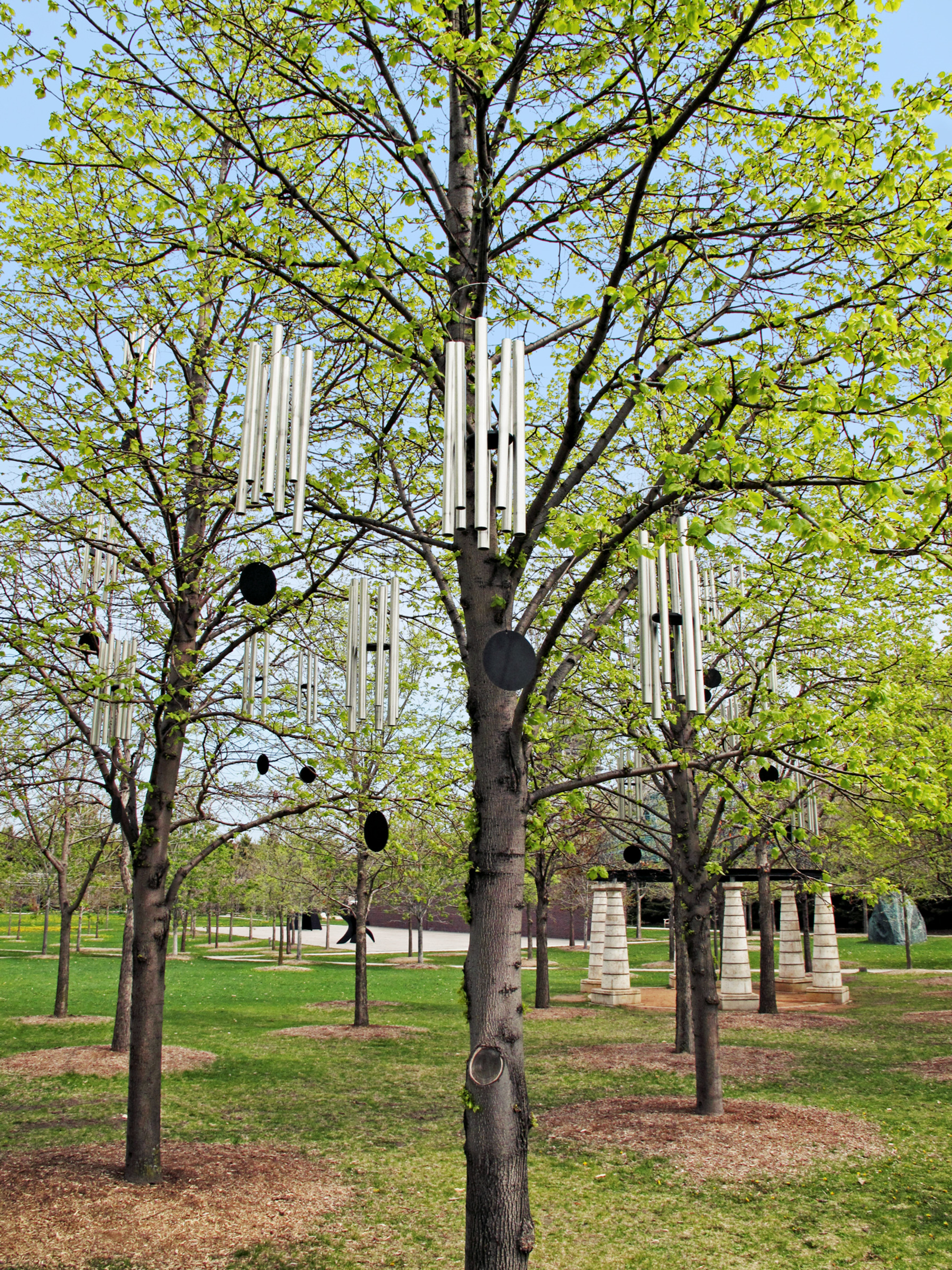 At the center of the park is an underground cistern, or water collection tank, near the Spoonbridge and Cherry. This feature helps to water the garden and nearby ball fields and also keeps more than 4 million gallons of runoff out of the storm sewers each year, thus reducing pollution in the Mississippi River basin.