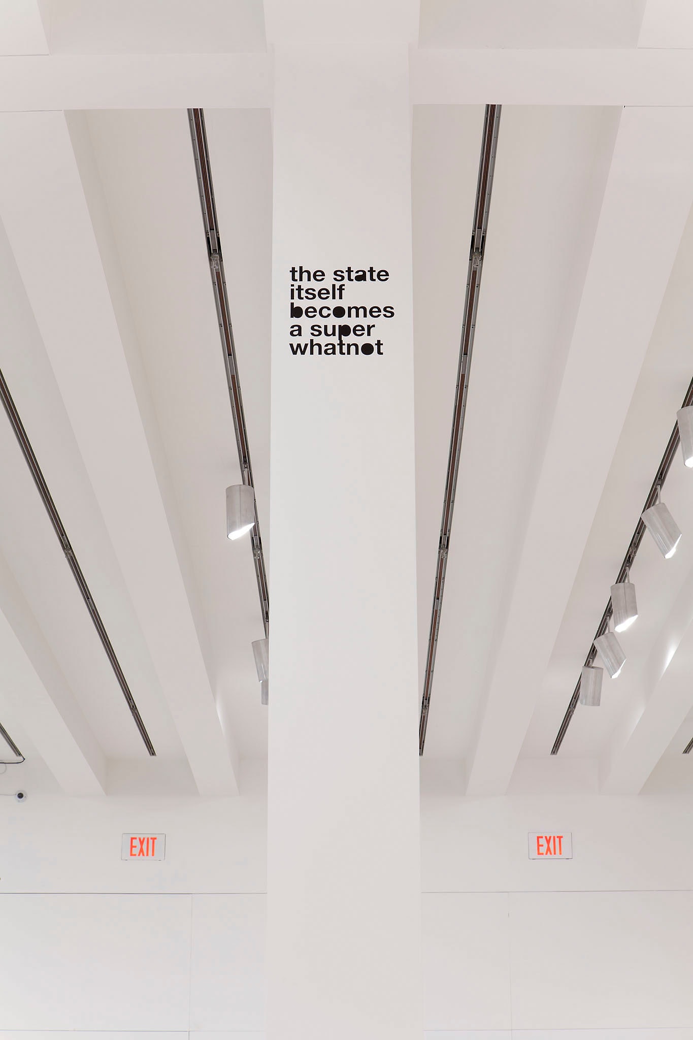 This international, multigenerational group exhibition considers the changing role of the artist in contemporary culture. Bringing together the expansive practices of some of the most provocative and engaged artists working today—Yael Bartana, Liam Gillick, Natascha Sadr Haghighian, Renzo Martens, Bjarne Melgaard, Nástio Mosquito, Hito Steyerl, and Danh Vo—the show examines ways that they negotiate the complicities and contradictions of living in an ever more complex and networked world. Rarely considered together, they each use their own backgrounds or identities as material, frequently in antagonistic or subversive ways. Featuring some 40 works, both past and new, 9 Artists includes a range of sculpture, painting, installation, video, and ephemera.