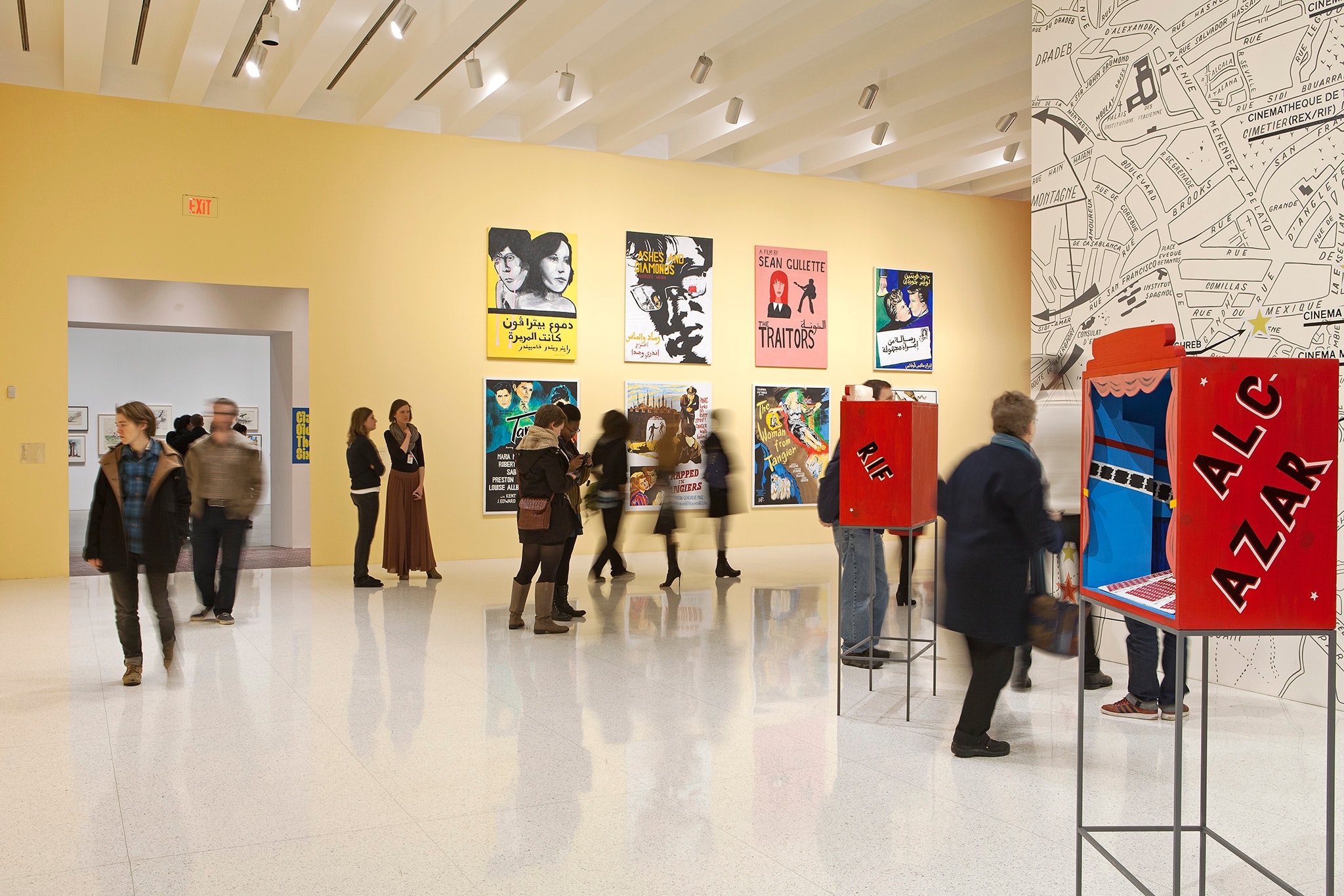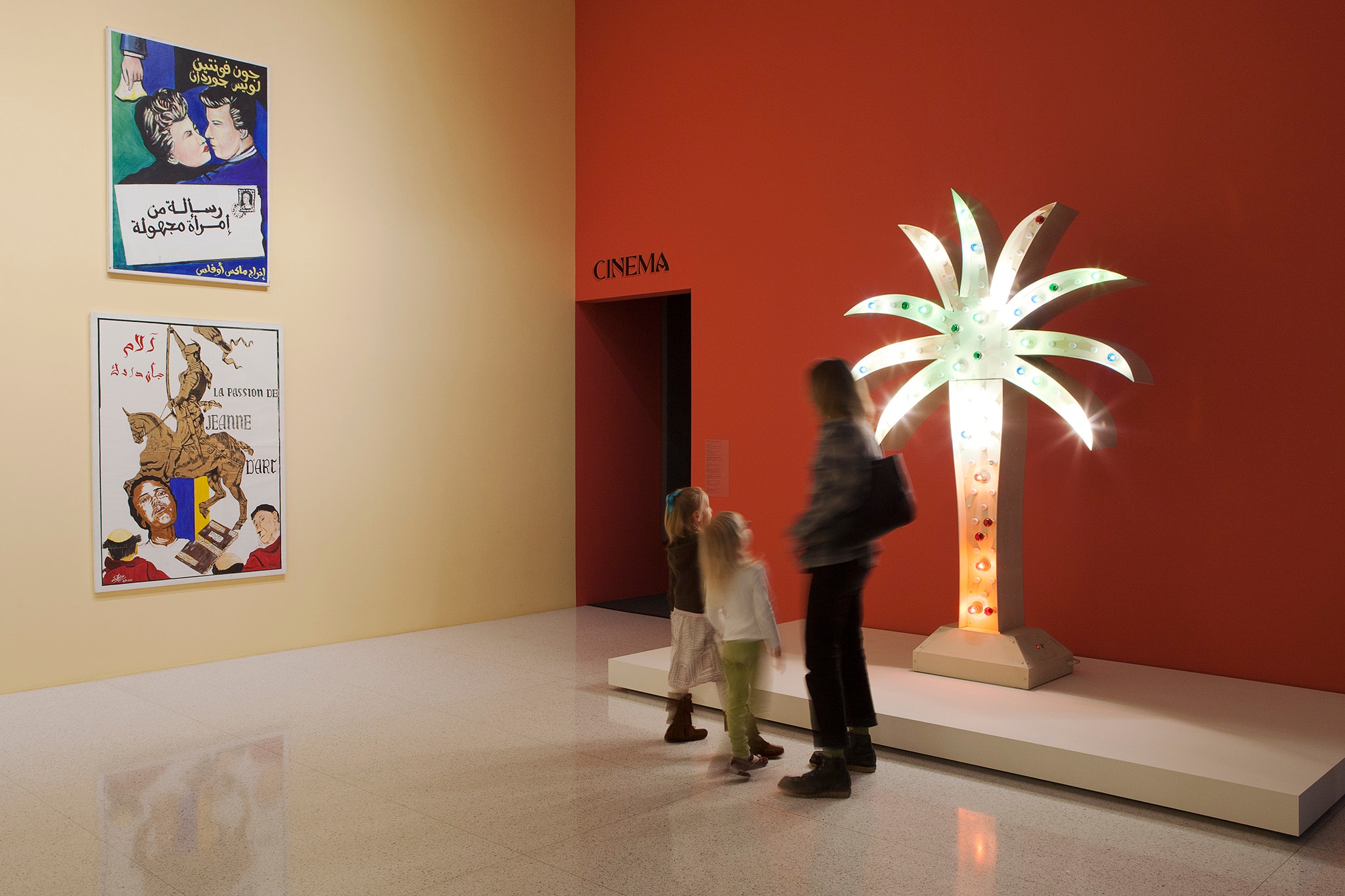 The exhibition Album: Cinematheque Tangier, a project by Yto Barrada includes films, artworks, and artifacts that speak to the artist’s connection with the social and political realities that shape her hometown—its rich and fractured history of migration, indigenous communities, and colonization. In the gallery, screenings of short works from the archive of Cinémathèque de Tanger and the Walker’s Ruben/Bentson Collection reflect life in the region from the 1930s to the present. Sculptures by Barrada—Palm Sign and a set of dioramas that depict cinemas during the heyday of grand theaters—are presented with her film Hand-Me-Downs (2011), a montage of Super 8 home movies from the 1960s. Artist-commissioned and vintage movie posters and a Scopitone “music jukebox” featuring films made by North African migrant workers in 1960s Paris are also on view. Together, these elements create an album that portrays Morocco’s rich and complex visual and cinematic culture.